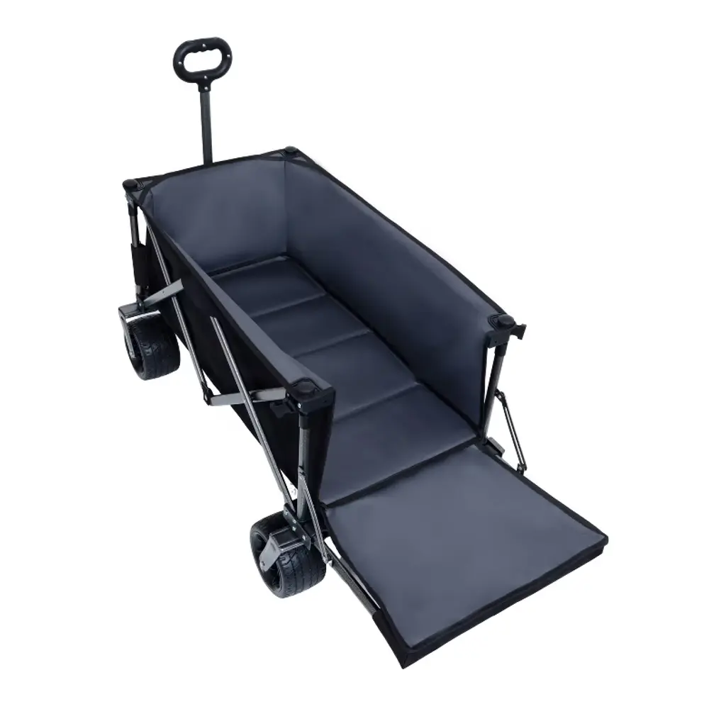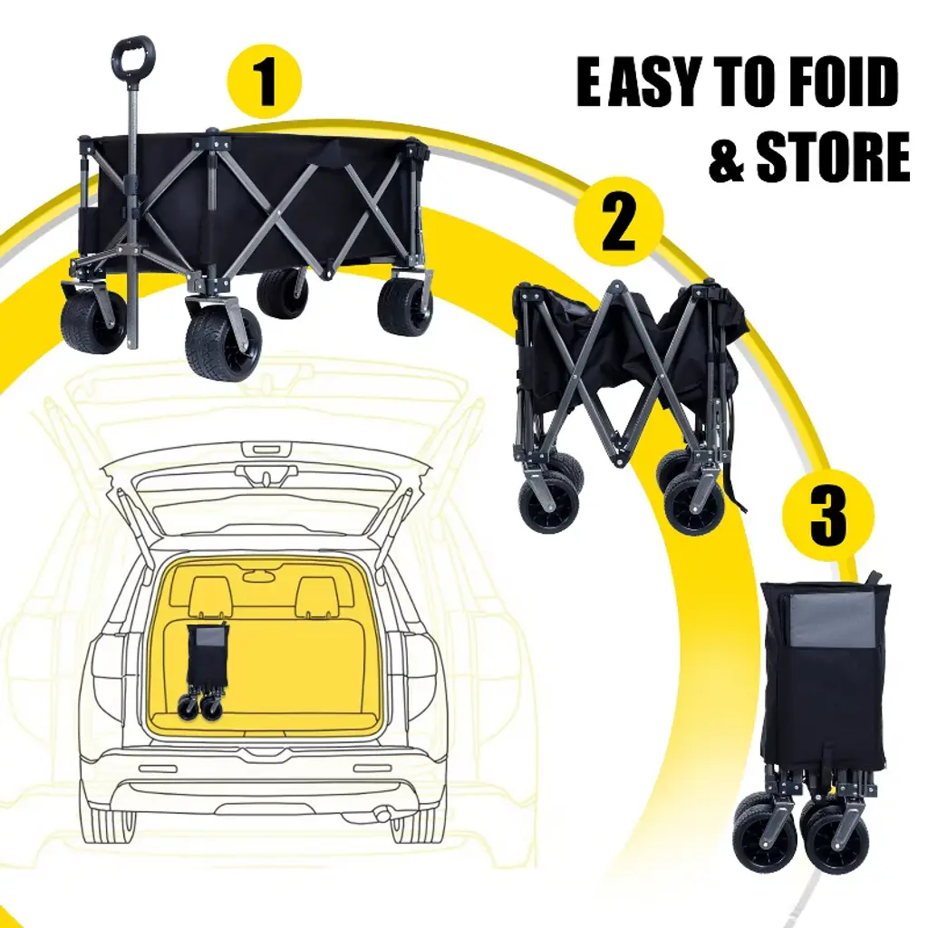 Collapsible Folding Wagon 300l,49" Extra Long Collapsible Wagon W/ Tailgate, All-terrain 7"x 4" Big Wheels,beach Wagon Cart Heavy Duty 400lbs Foldable
