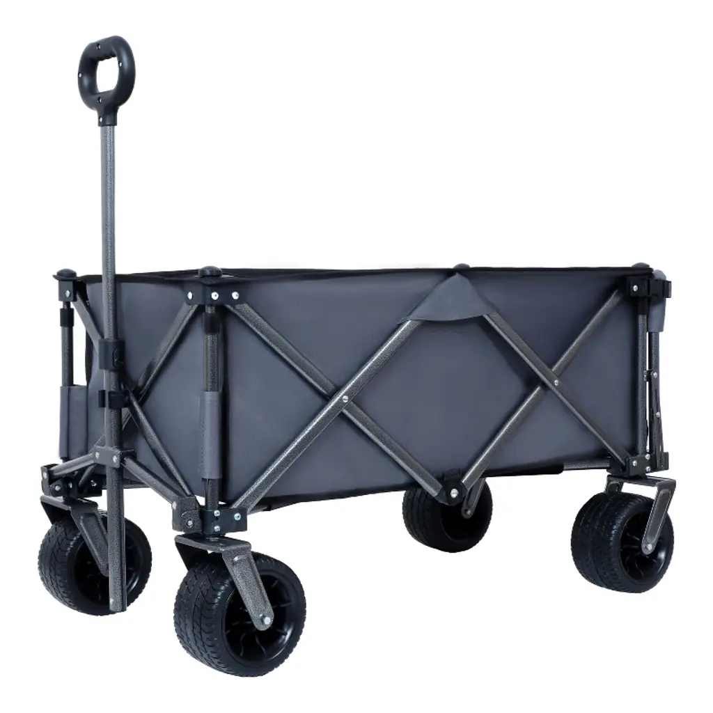 Collapsible Folding Wagon 300l,49" Extra Long Collapsible Wagon W/ Tailgate, All-terrain 7"x 4" Big Wheels,beach Wagon Cart Heavy Duty 400lbs Foldable