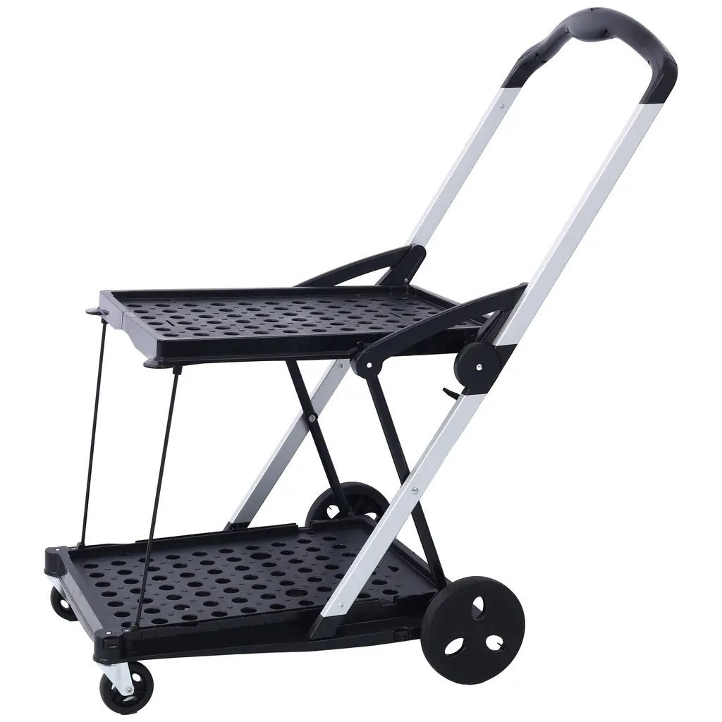 Collapsible Utility Cart Multi Use,shopping Carts With 2-Tier - Black