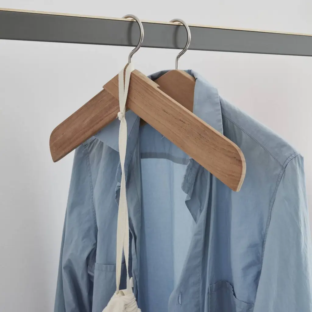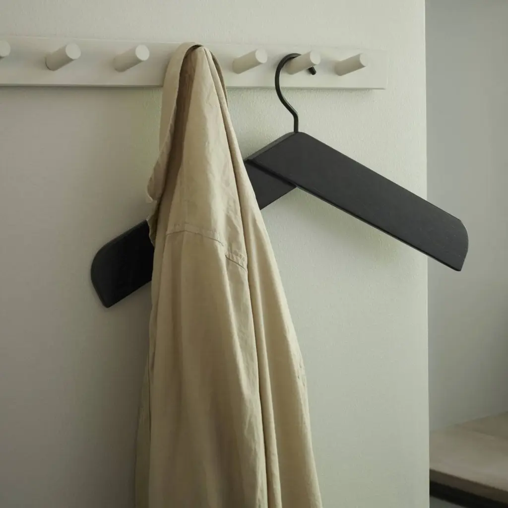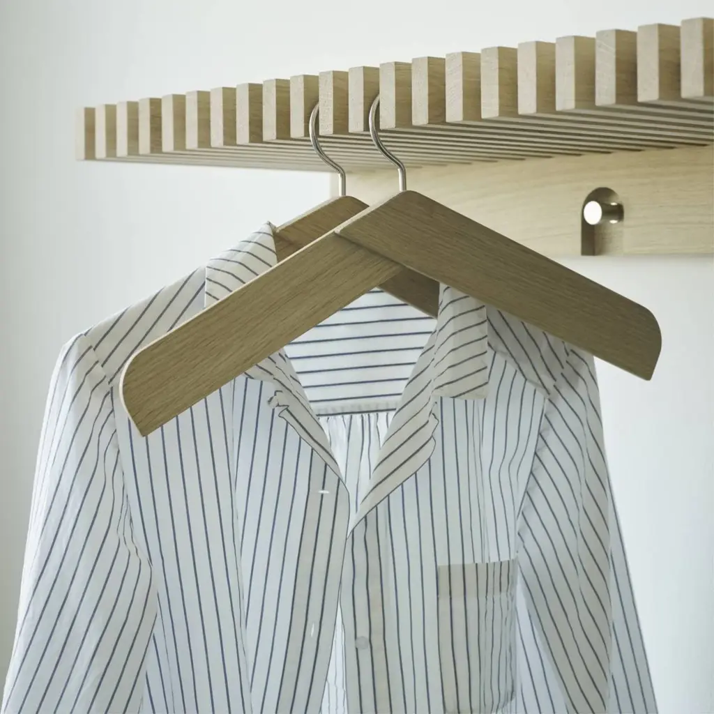 With its design edited to the essential form of a pair of broadly overlapping wood pieces, this versatile hanger has a refined look that needn’t be hidden away in a closet. From their TAF studio in the Södermalm district in Stockholm, designers Mattias Ståhlbom and Gabriella Gustafson conceive Collar, a minimalist hanger for shirts, dresses and jackets. Available in teak, natural oak and black-finish oak, the richness of the sustainably sourced wood adds an attractively tactile element.