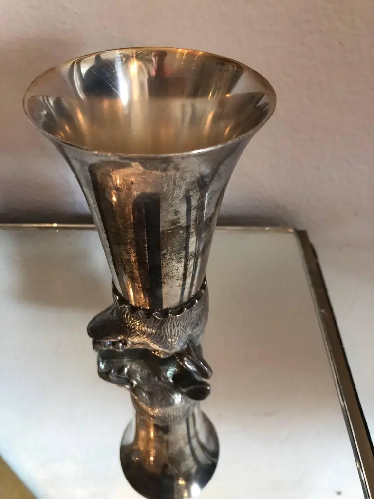 A collection of silver plated liqueur cups decorated in wild boar, and deer head forms-by "Valentin" Spanish designer.Sold individually.
