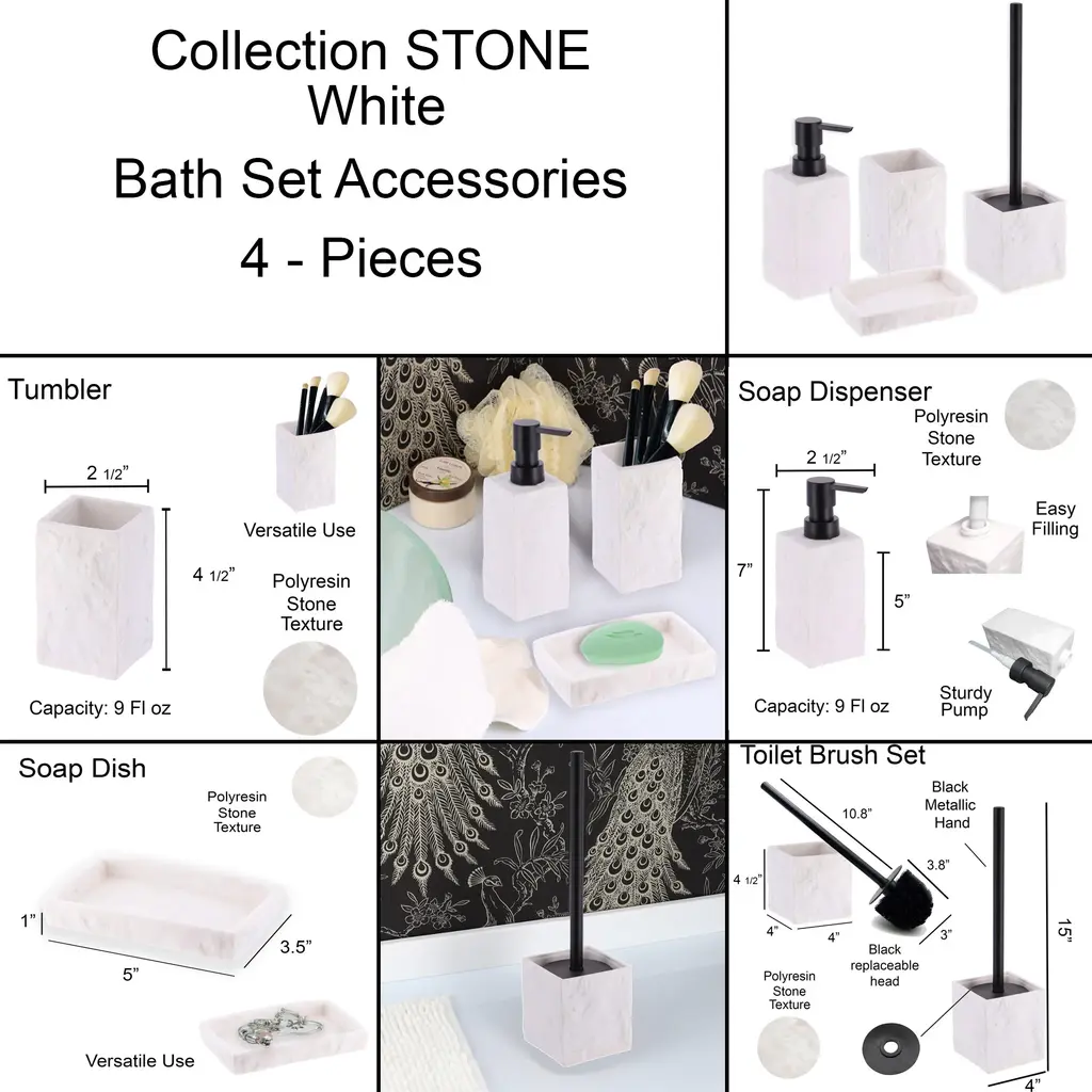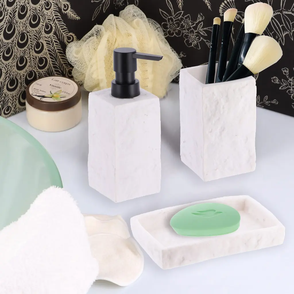 Collection Stone Effect Bath Accessory Set-4 Pieces - Full Set 4 Pieces - White