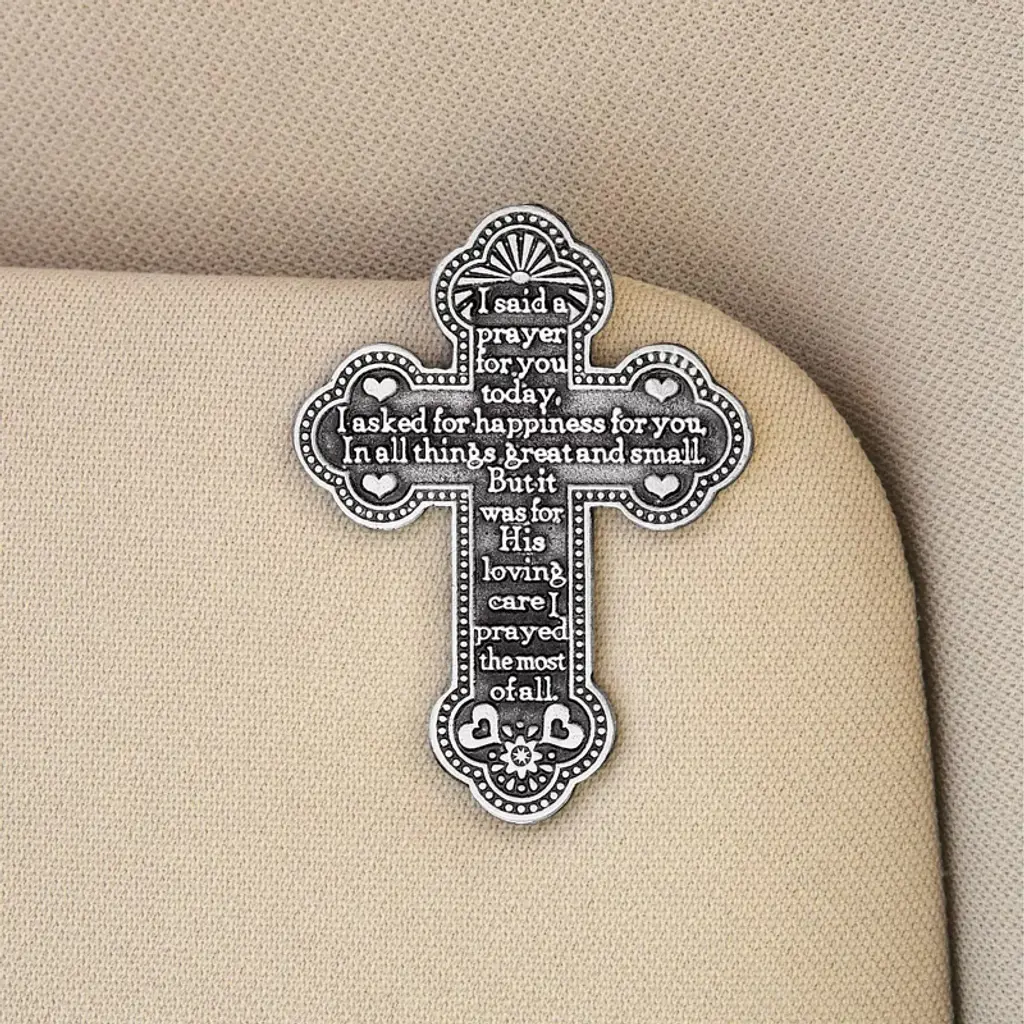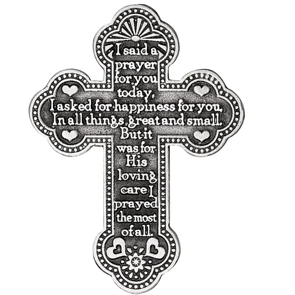 This Beautifully Designed Visor Clip Is A Lovely Way To Remind Your Loved Ones That They Are In Your Thoughts And Prayers. Pewter Finished Cross-Shaped Visor Clip Reads, " I Said A Prayer For You Today, I Asked For Happiness For You In All Things Great And Small. But Is Was For His Loving Care I Prayed The Most Of All". Fits Standard Visor. Zinc. Measures 1 3/4"L X 2 1/2"H.