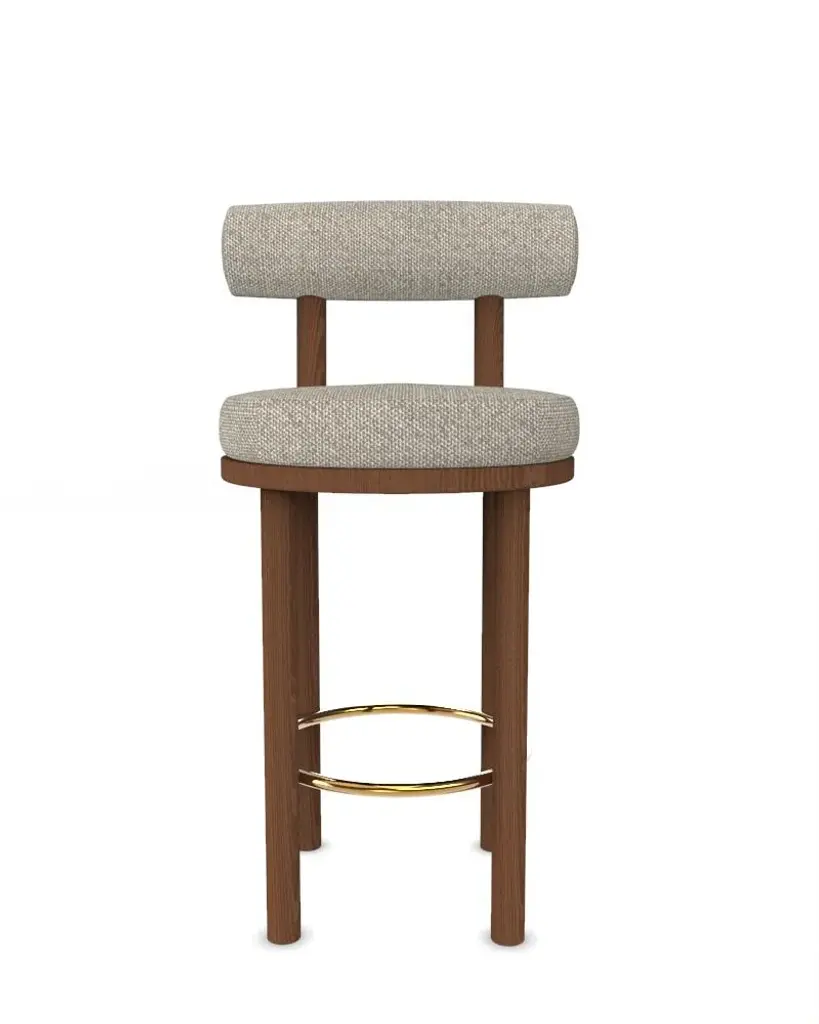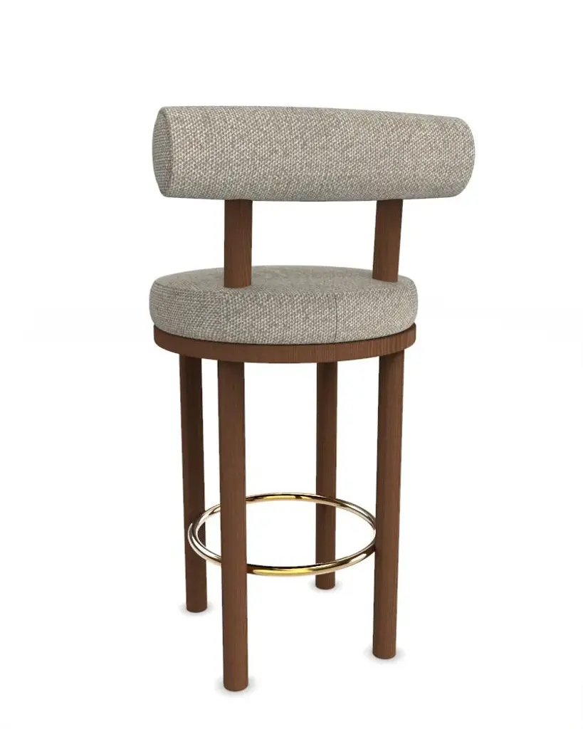 Contemporary modern moca bar chair in fabric by studio rig for collector studio a chair that mixes both modern and classical design approaches. designed to hug the body, durable and solid chair features a body structure produced in solid wood. dimensions w 50 cm 17.7” d 55 cm 20.5” h 102 cm 40.2” - seat height 64 cm or h 108 cm 44.1” - seat height 68 cm product features solid oak wood structure. Uphostered in fabric.