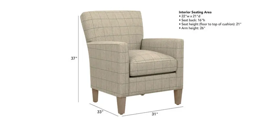 The modern, English Regency-inspired chair cuts a dashing figure with a square frame, deep cushions, and tight back. Track arms give it an updated contemporary look. Choose from our most popular fabrics and leathers online or come to our Design Centers for even more options.