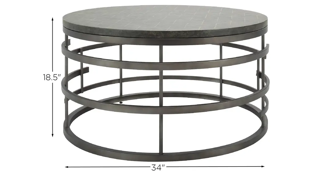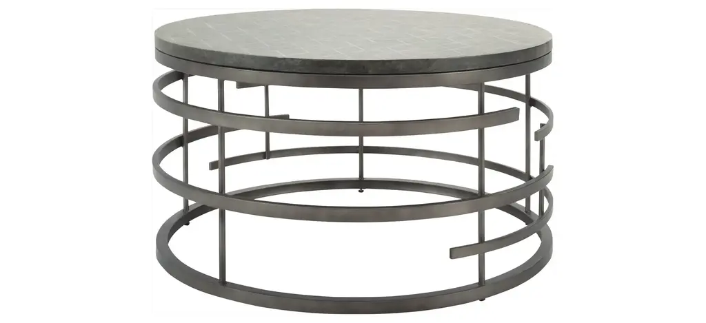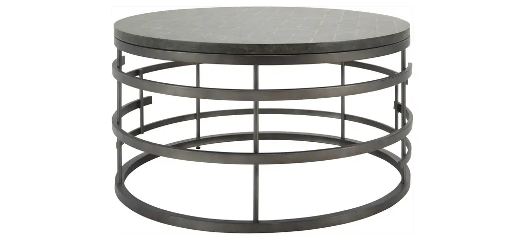 Bring a unique element into your space with the Collington cocktail table. The rounded design with geometric detailing on the top brings a contemporary vibe into your space.