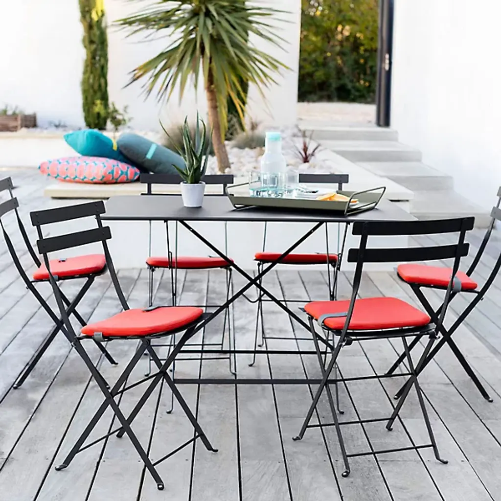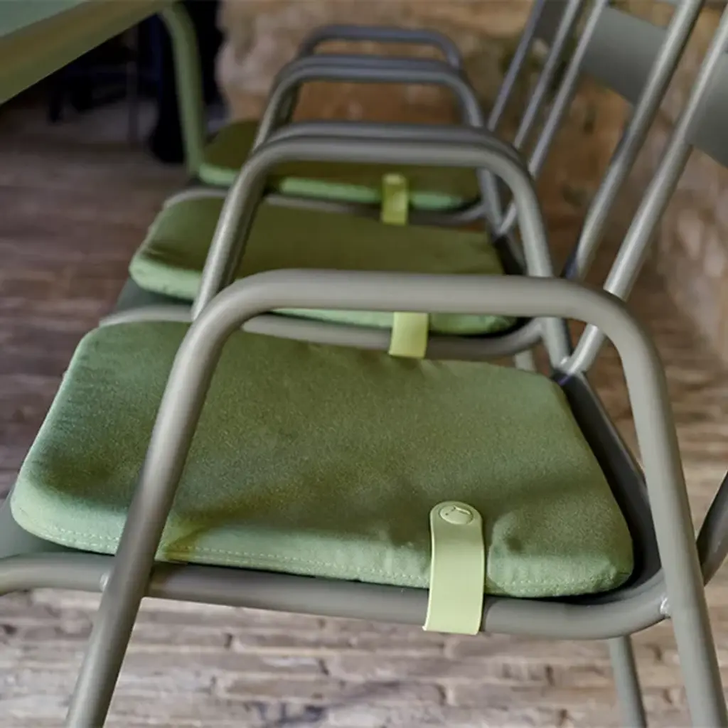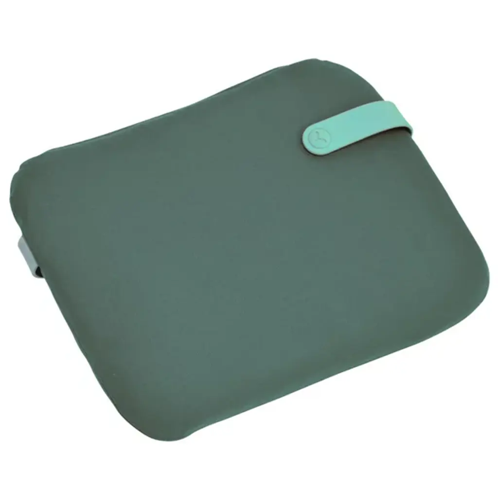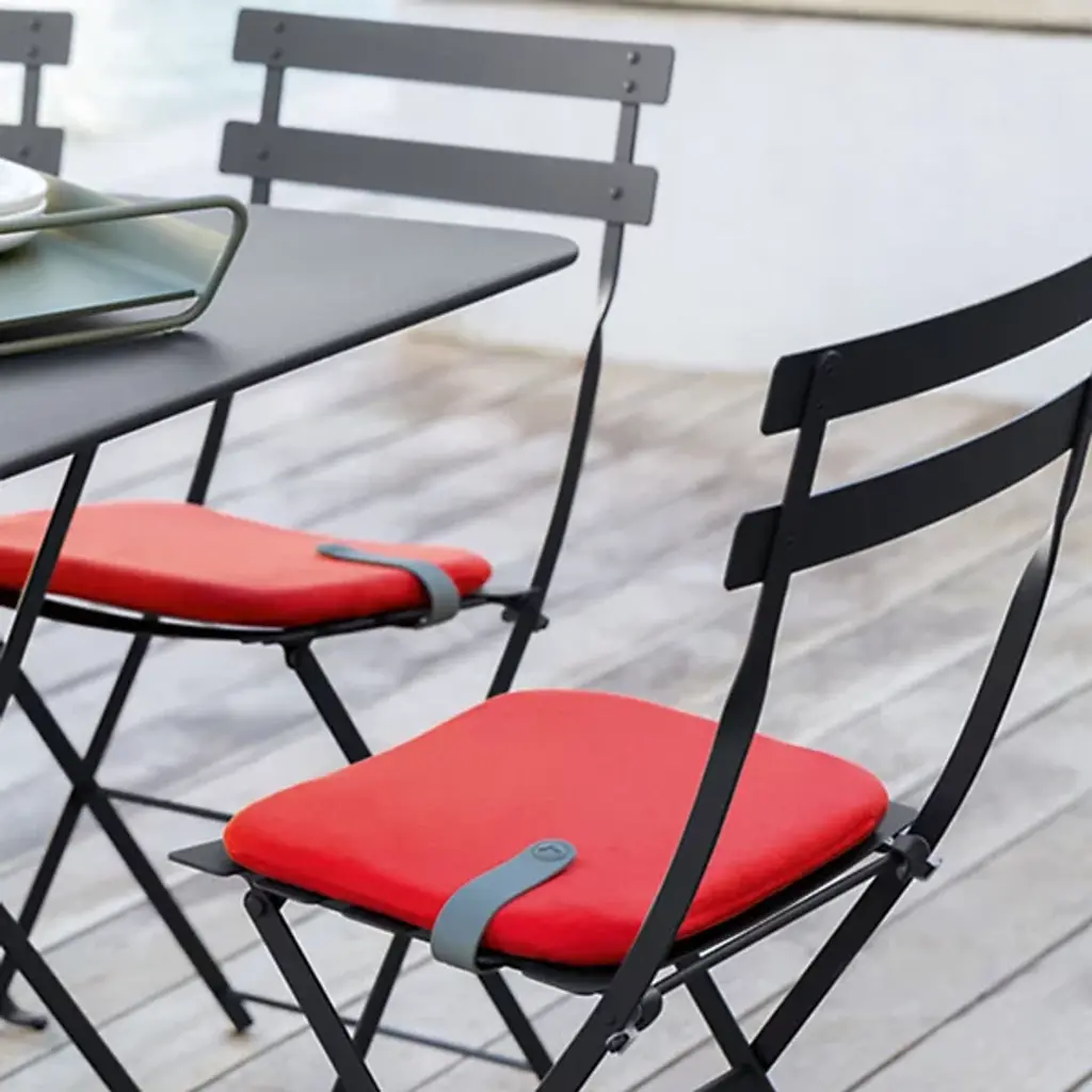 The Color Mix Bistro Cushion by Fermob is a comfort-bringing addition to an outdoor seating area. Crafted with Dralon® solution-dyed acrylic and filled with polyurethane foam, this rectangular cushion offers both durability and comfort. Specially designed to fit Fermob's iconic Bistro folding chair, the Color Mix cushion perfectly complements the chair’s curved form and easily wraps around the Bistro slats, secured with a colored PVC strap fastened with a snap button.