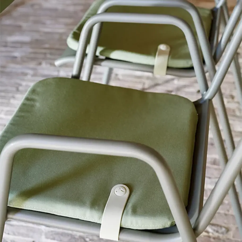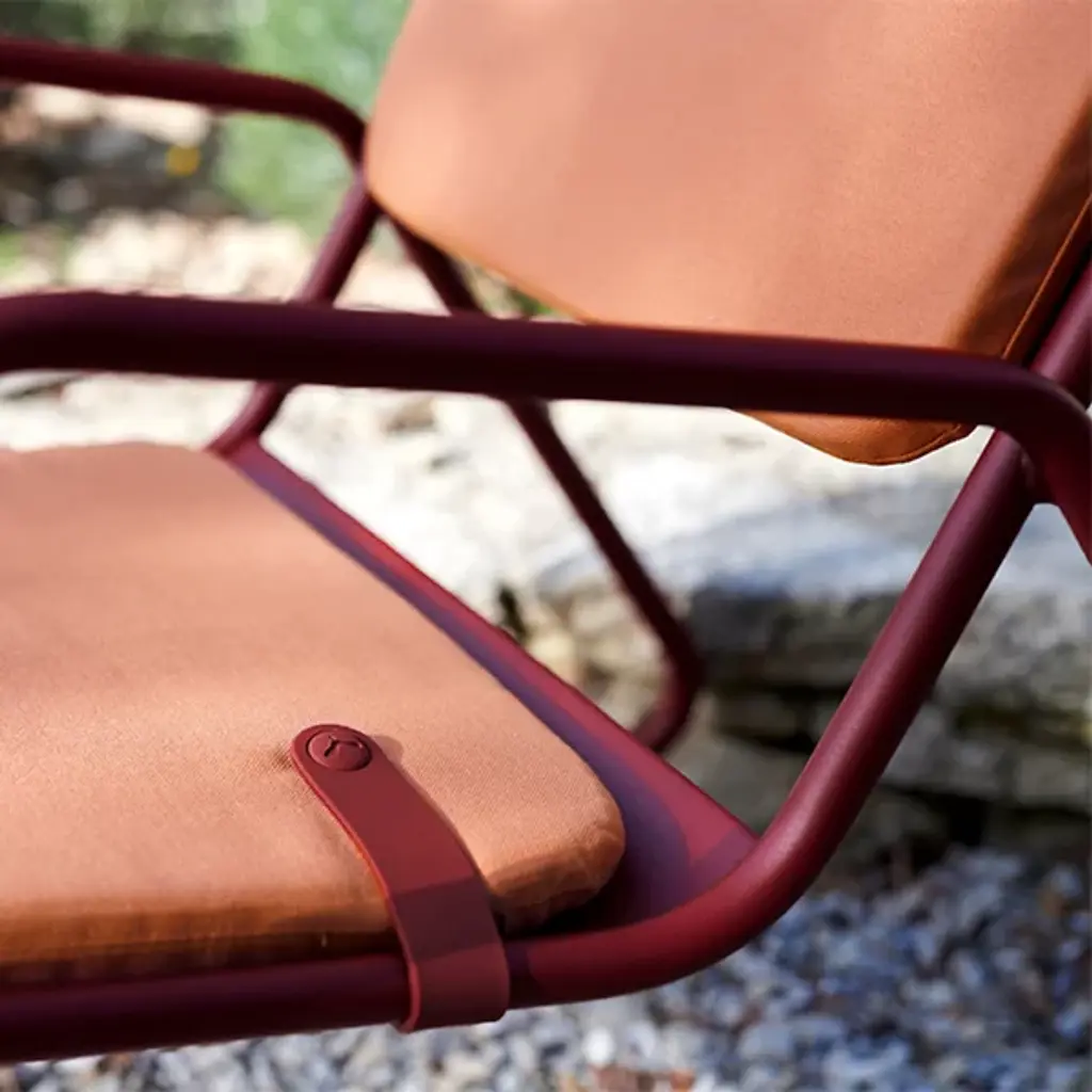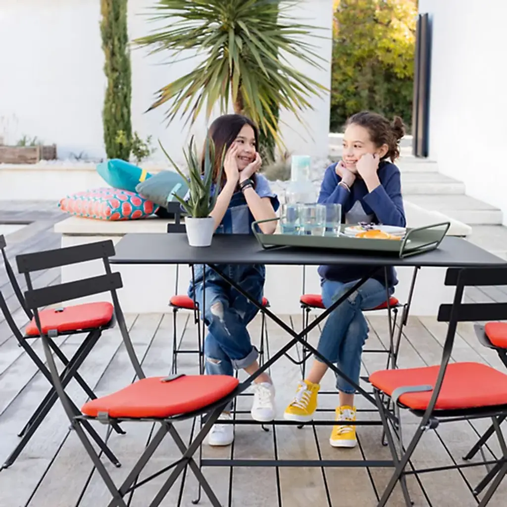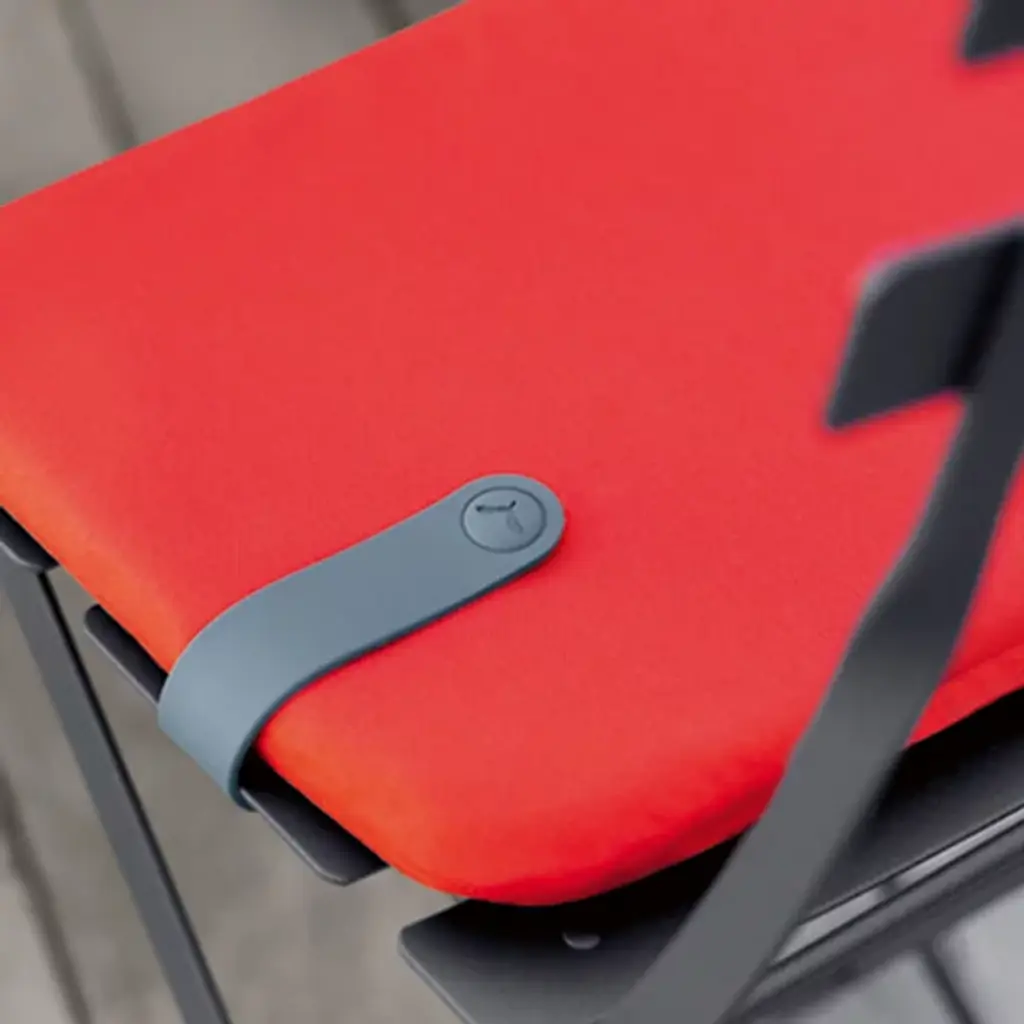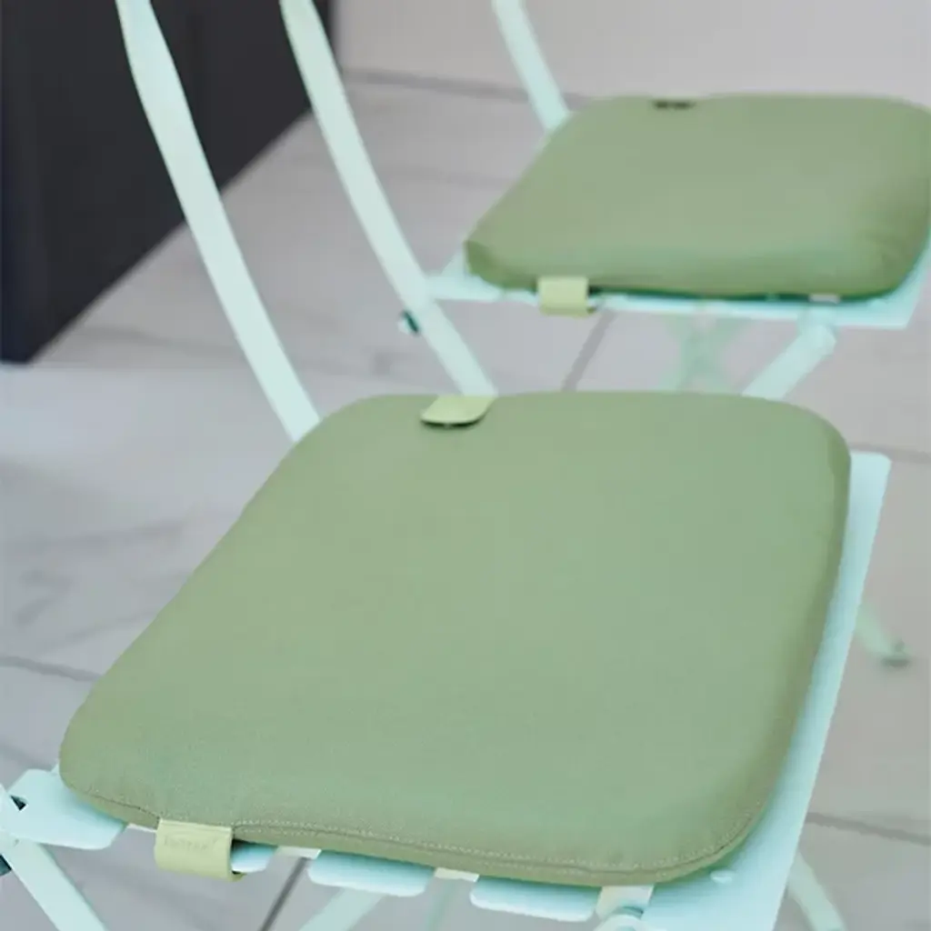 The Color Mix Bistro Cushion by Fermob is a comfort-bringing addition to an outdoor seating area. Crafted with Dralon® solution-dyed acrylic and filled with polyurethane foam, this rectangular cushion offers both durability and comfort. Specially designed to fit Fermob's iconic Bistro folding chair, the Color Mix cushion perfectly complements the chair’s curved form and easily wraps around the Bistro slats, secured with a colored PVC strap fastened with a snap button.