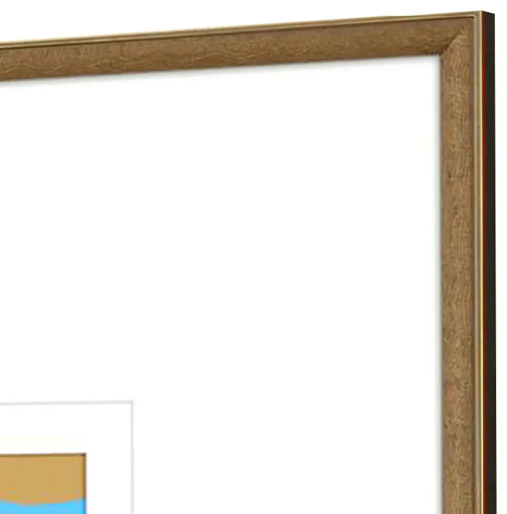 Exclusive hand painted on fine art paper. Framed in an antique gold wood with embossed weave pattern.