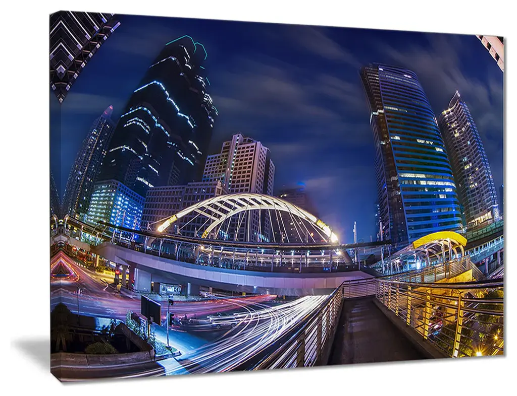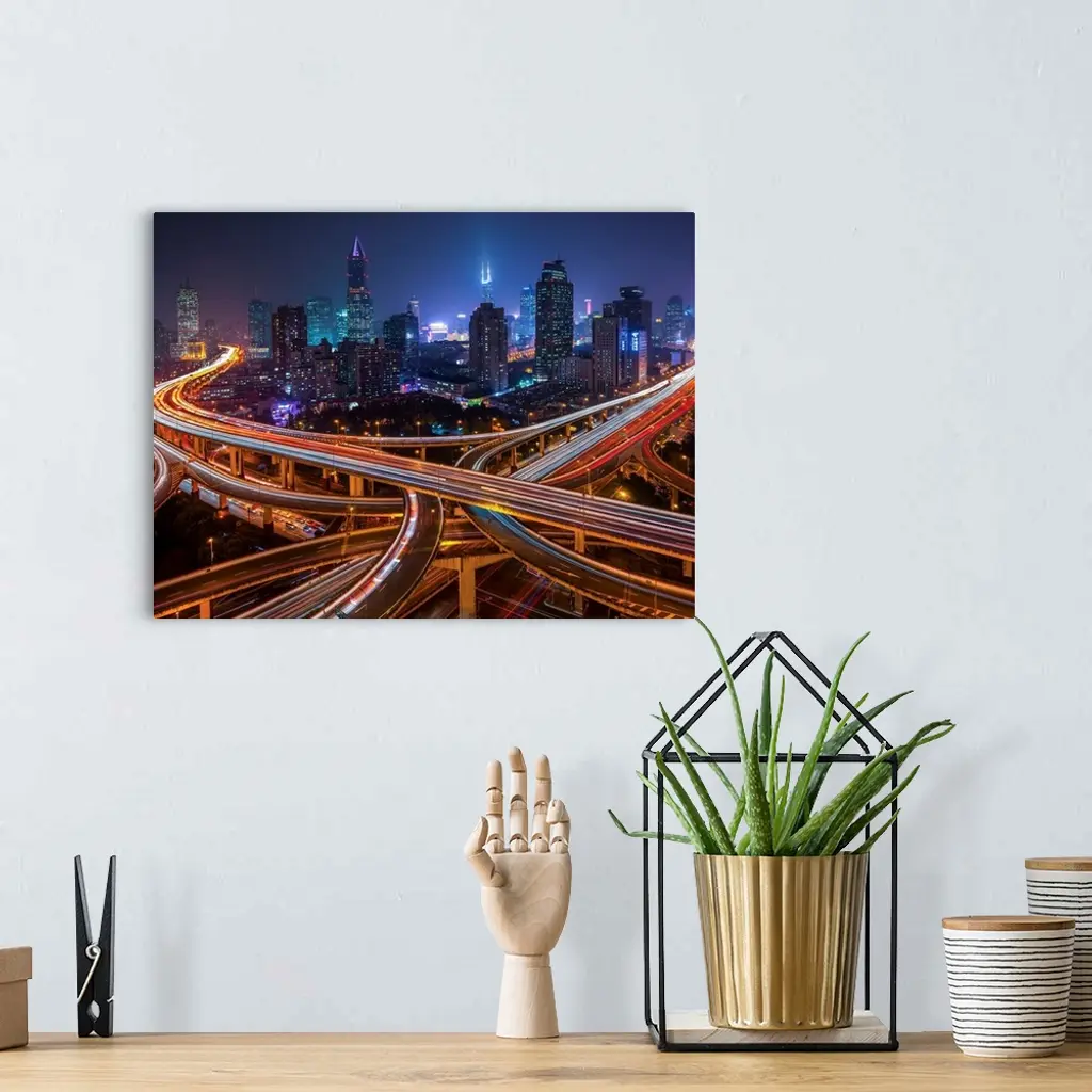 Horizontal city skyline of Shanghai, China at night.