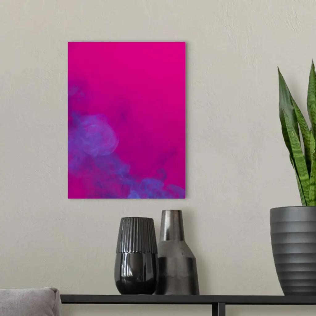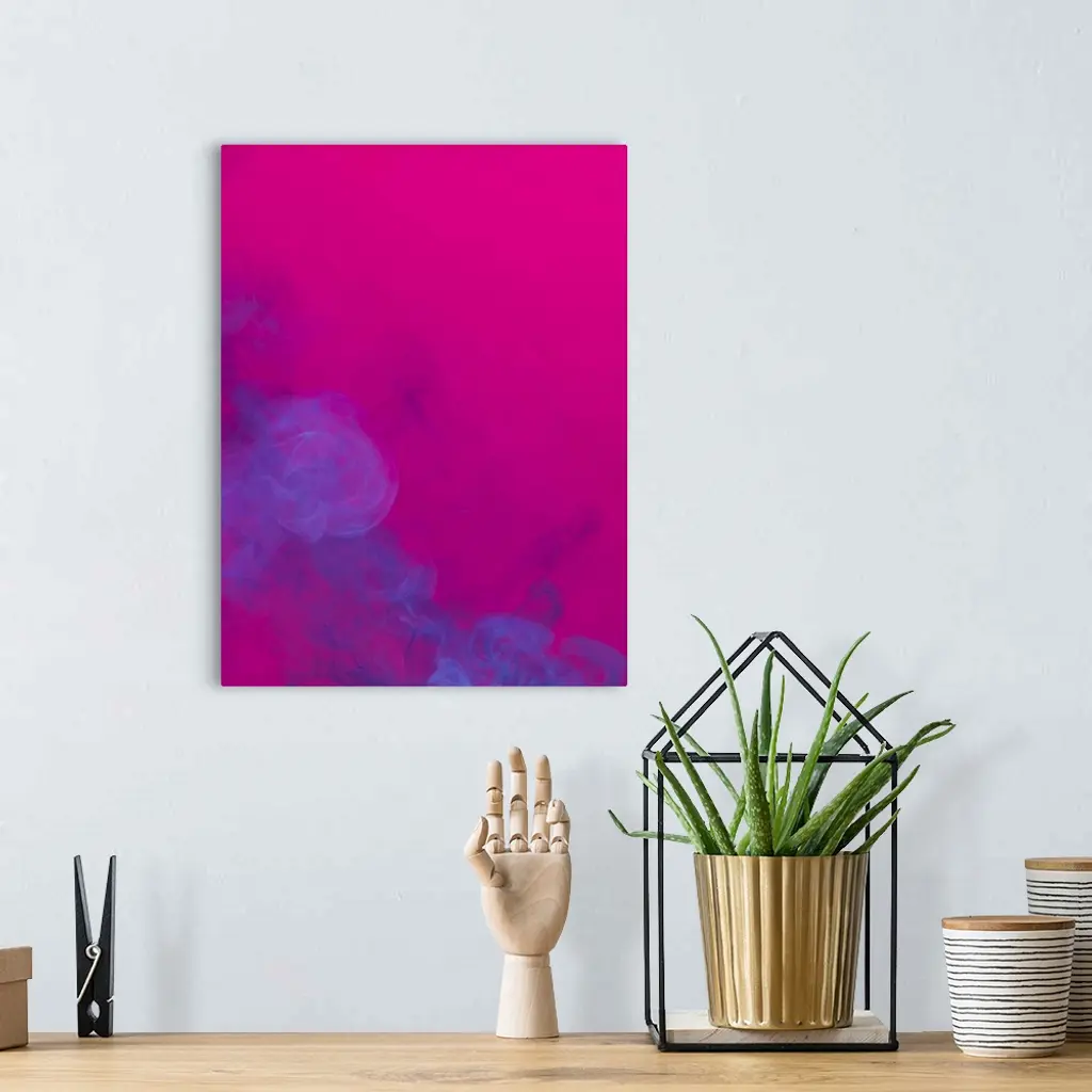 Blue smoke that rises up and mixed into beautiful abstractions on a pink background