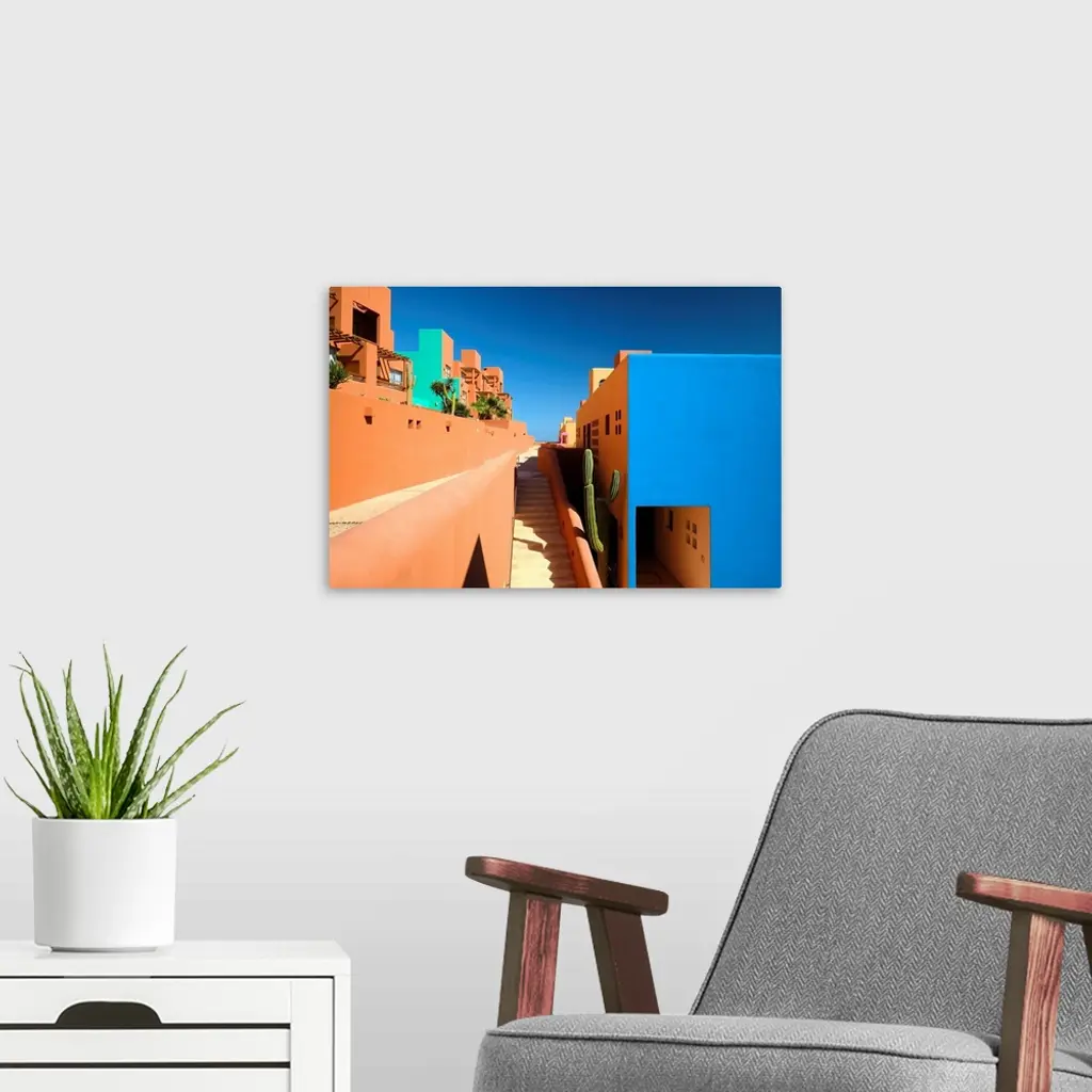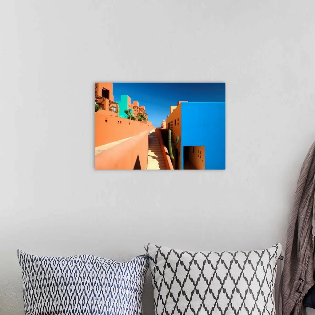 View of colorful Adobo style building exteriors, Cabo San Lucas, Baja California Sur, Mexico.