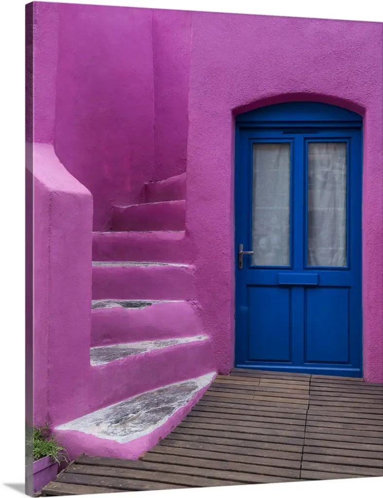 Colorful Building In Oia On Santorini In The Greek Isles wall art for home and office decor. Discover canvas art prints, photos, mural, big canvas art and framed wall art in GreatBigCanvas.com's varied collections.