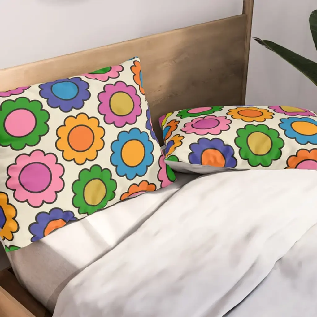 Colorful Flowers Happy Retro Pattern Pillow Sham