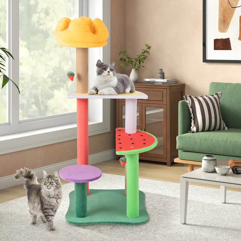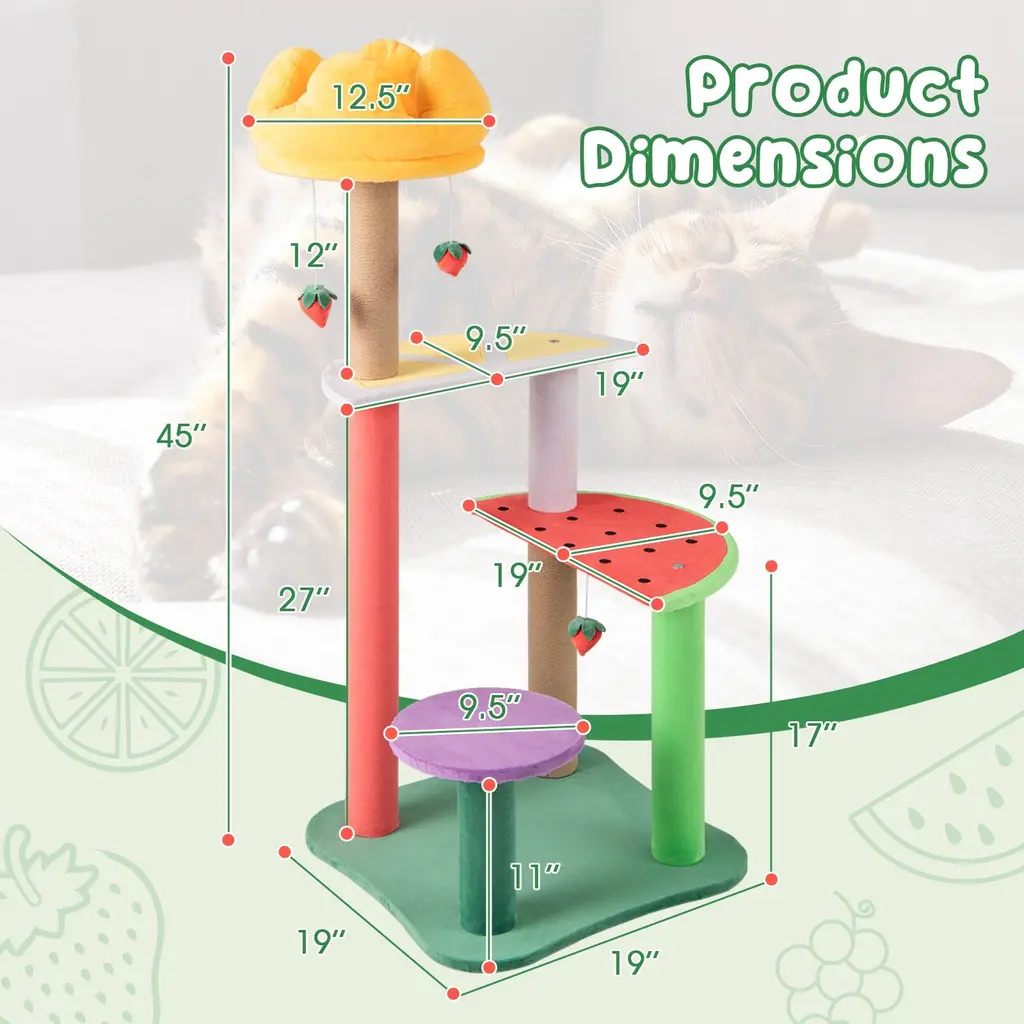 Colorful Fruit-Themed Cat Tree With Multi-Level Platforms And Scratching Posts 45 Inch - Multi-Color