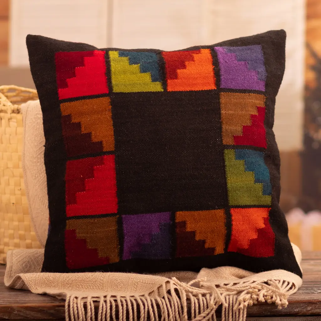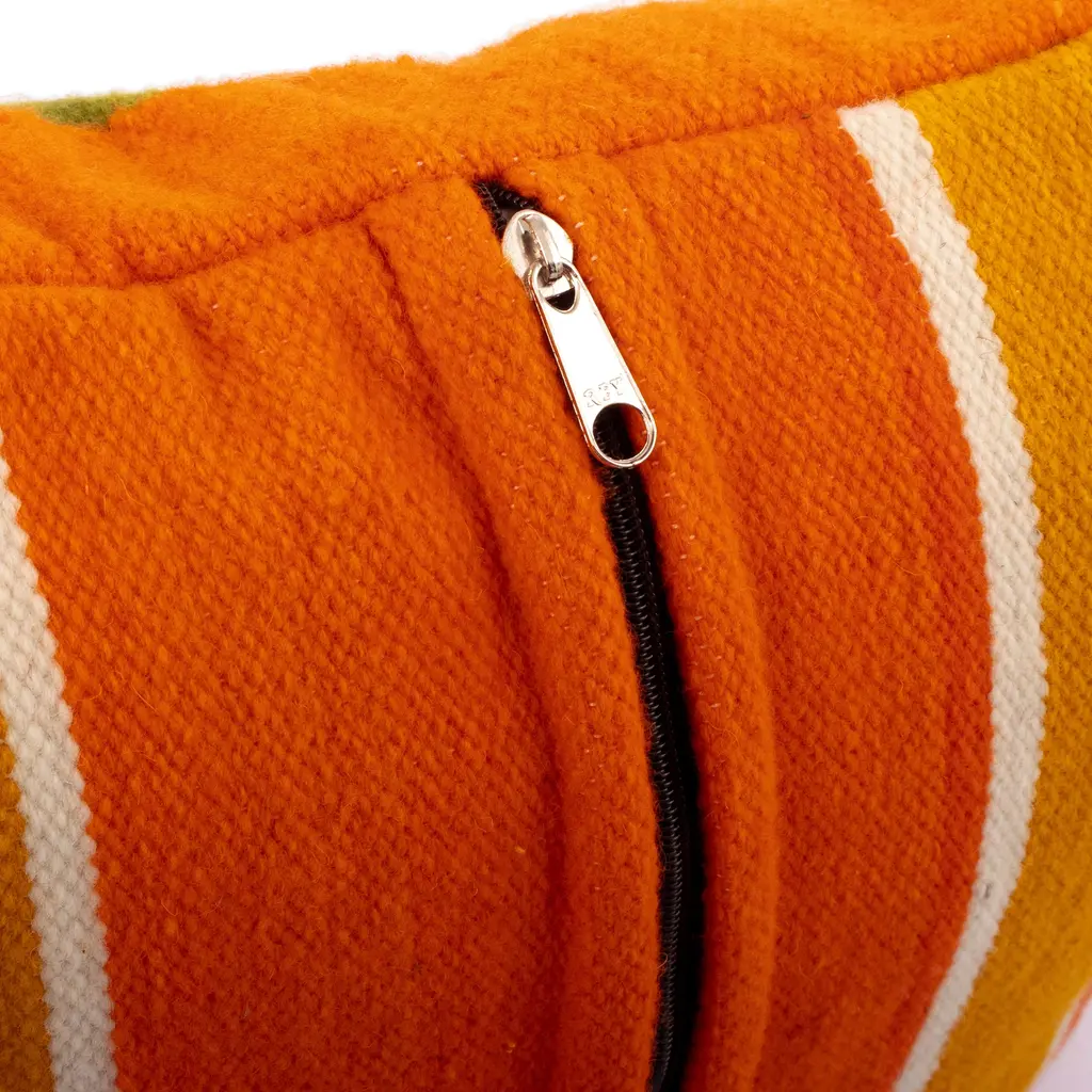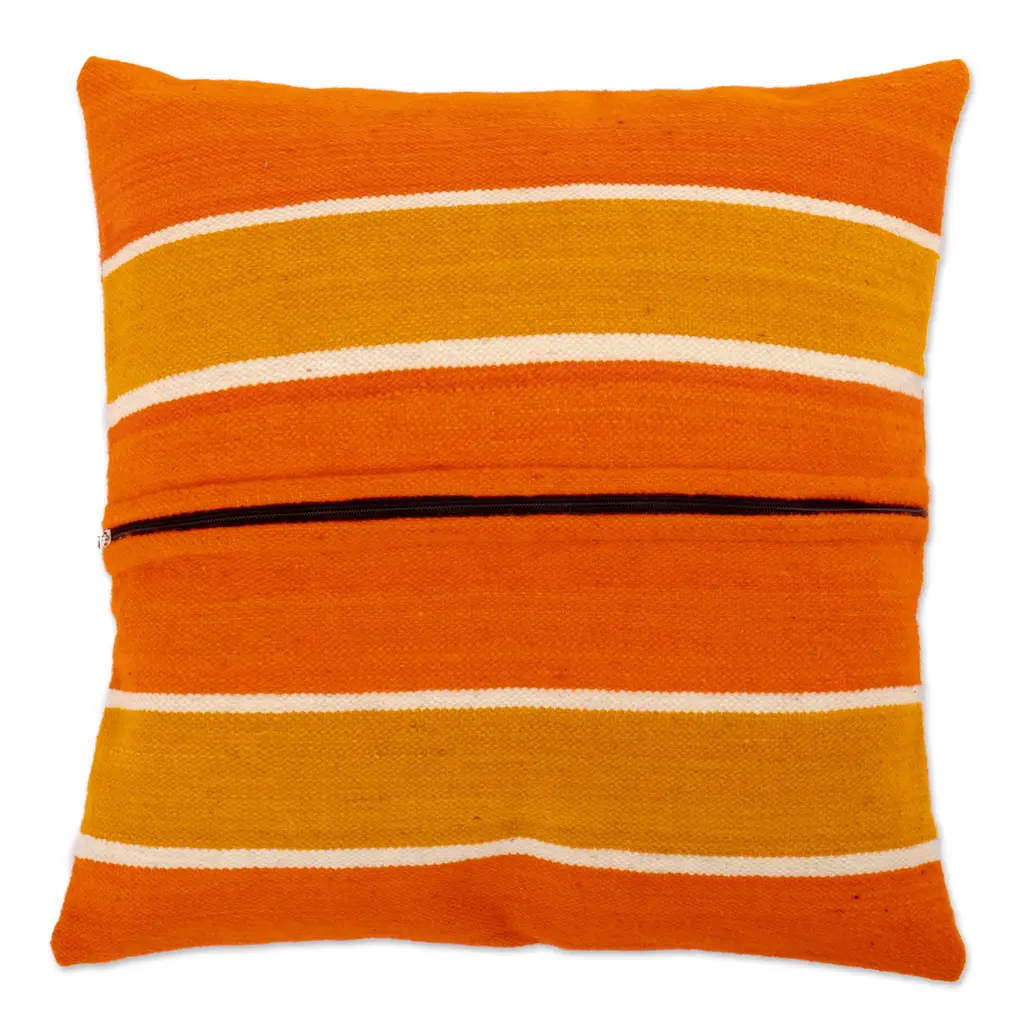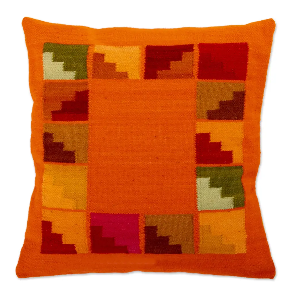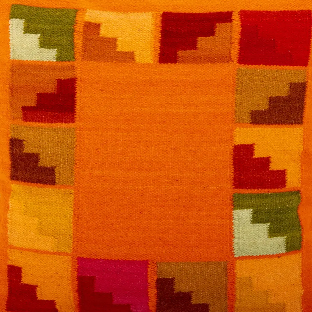 Warm colors and geometric shapes inspired by pre-Hispanic cultures will captivate you as soon as you lay eyes on this bright cushion cover hand-woven from wool in Peru. This fabulous decorative accent that fills any room with life is designed by artisan Zosimo Laura and features a striped reverse side with a zipper closure in the middle so you can easily insert a cushion (not included.)