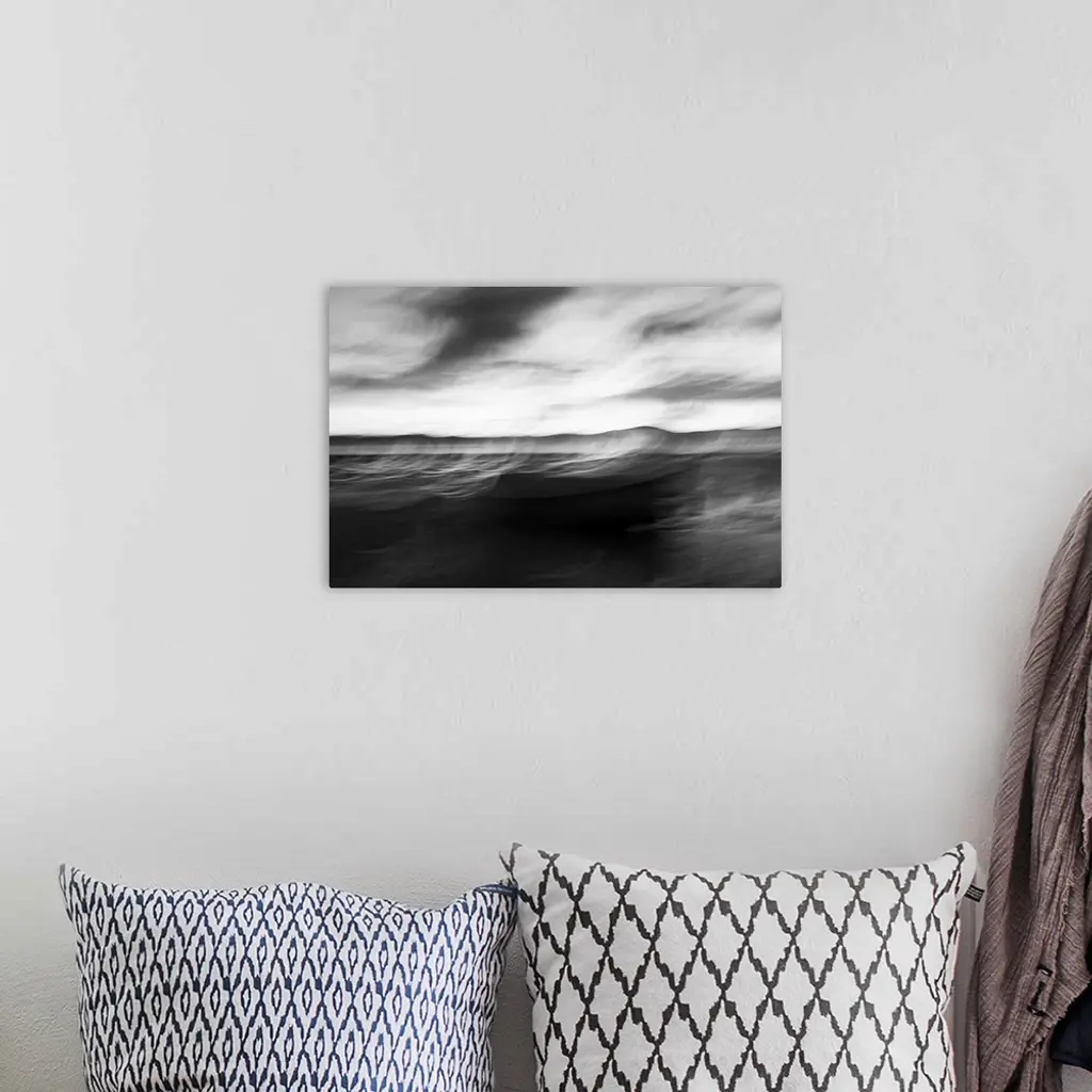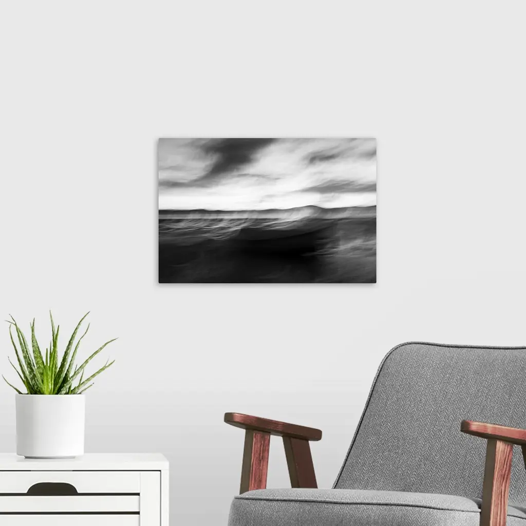 Monochrome intentional camera movement blurs of coastal impressionist style image in morning light. New Zealand.