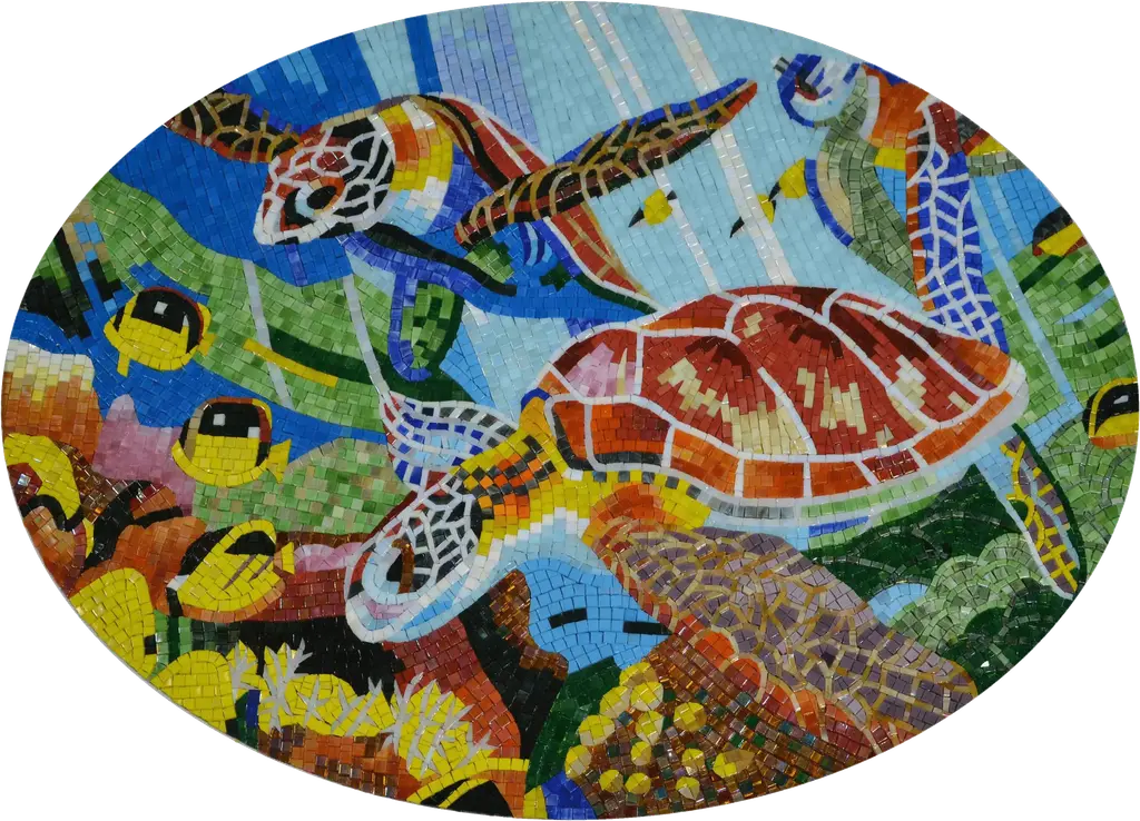 Colorful Sea Turtles Glass Mosaic Mural - 120cm X 90cm (47" X 35")