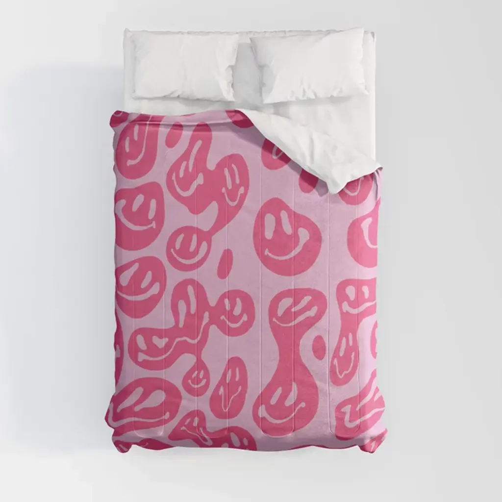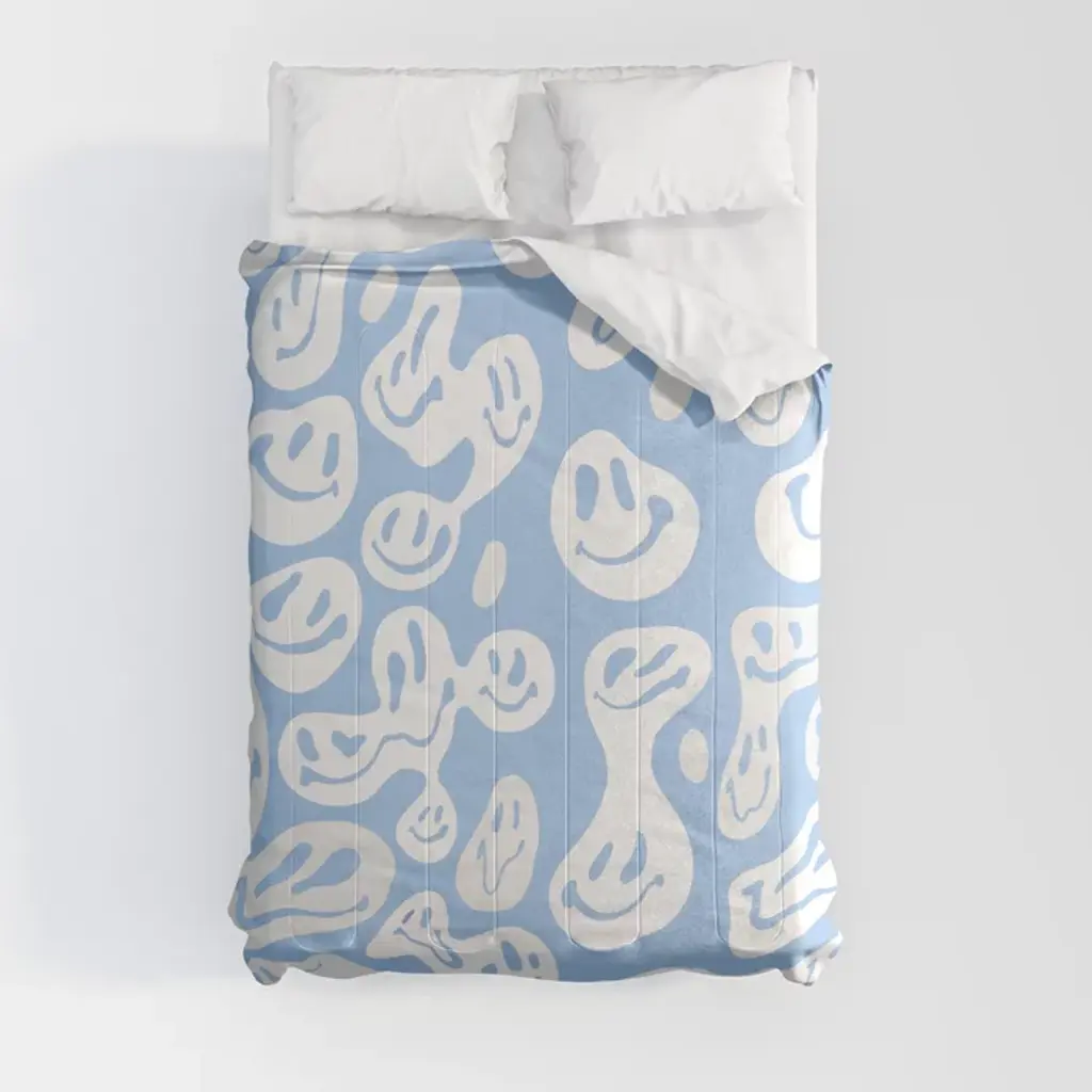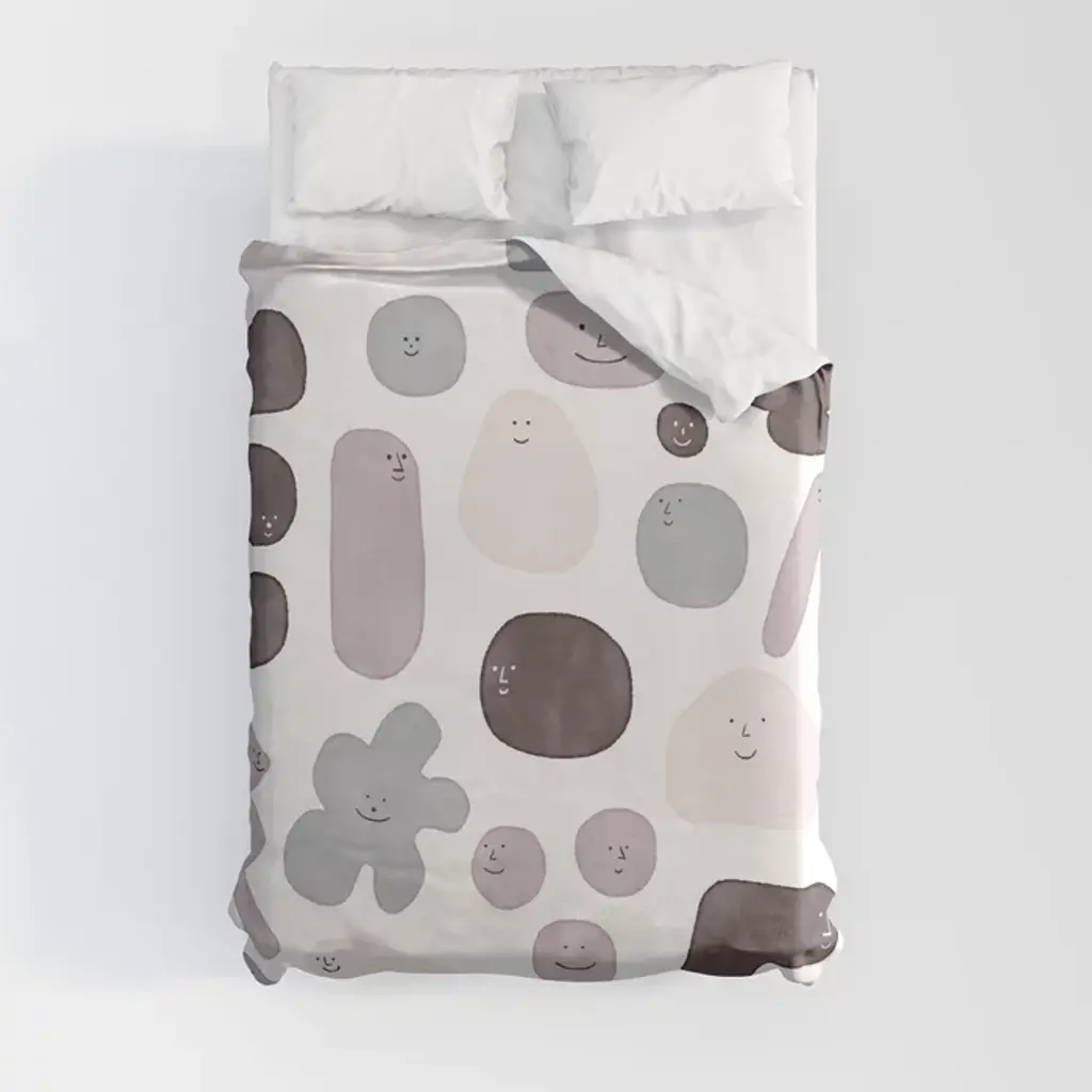 Colorful Smiley Faces Beige Pattern Duvet Cover