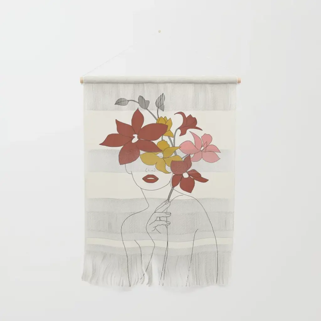 Colorful Thoughts Minimal Line Art Woman With Orchids Wall Hanging