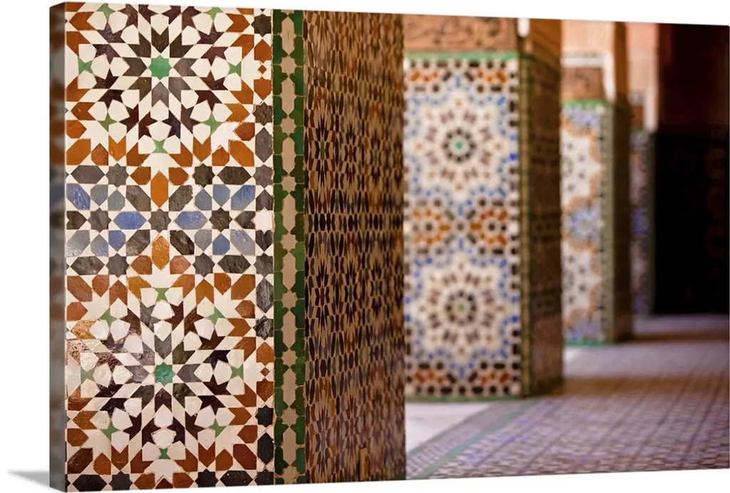 Colorful Tiled Mosaic At Marrakech Museum, Housed In The 19th Century Dar Menebhi Palace