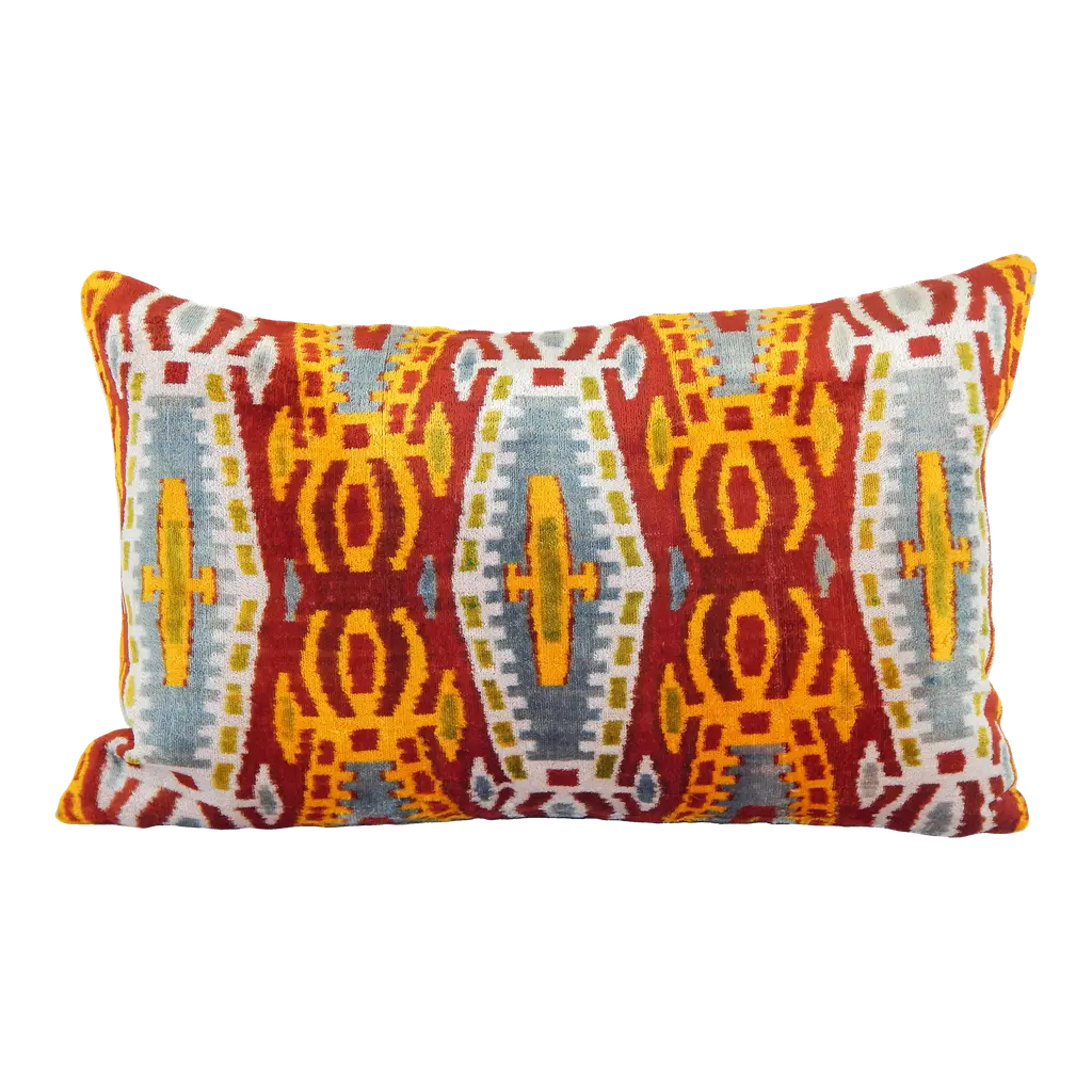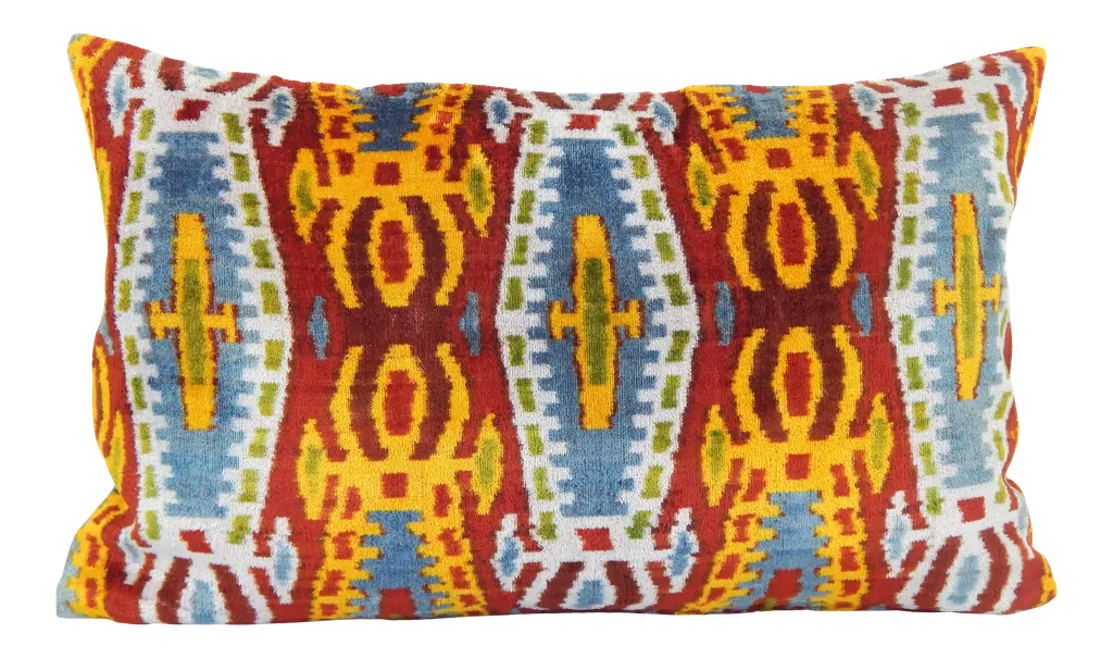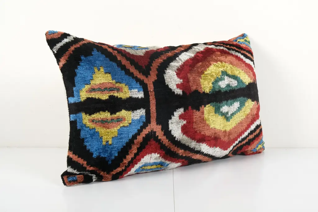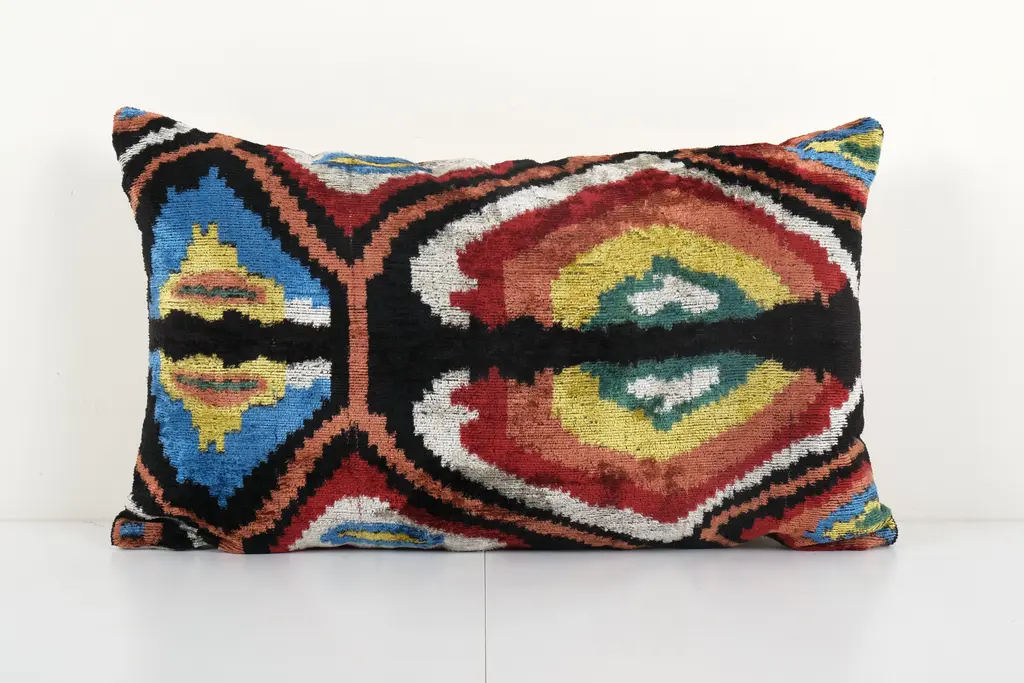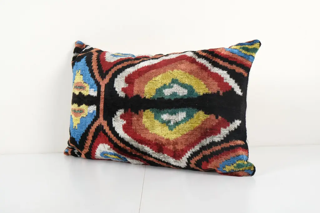 Colorful Velvet Ikat Cushion Cover 14'' X 24''