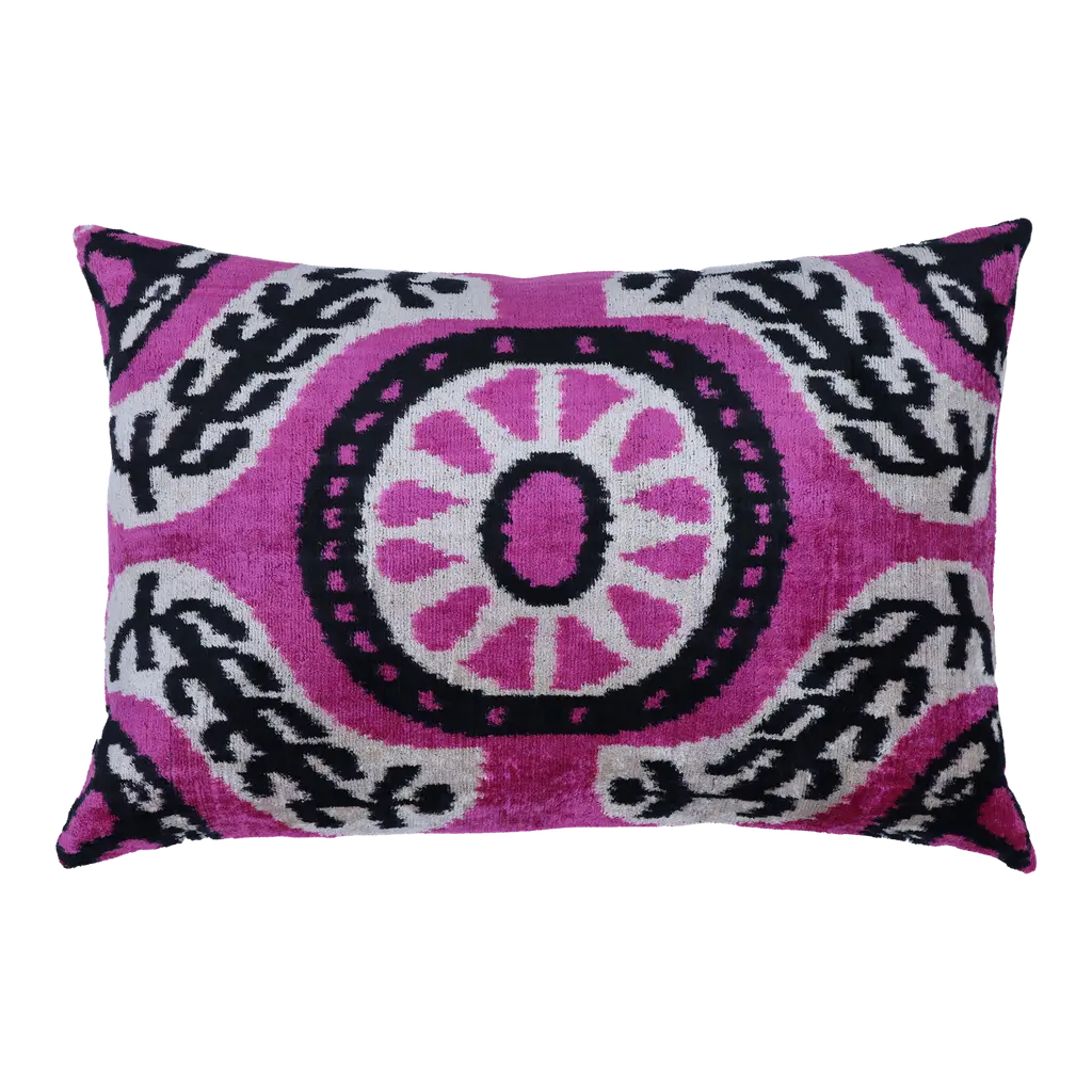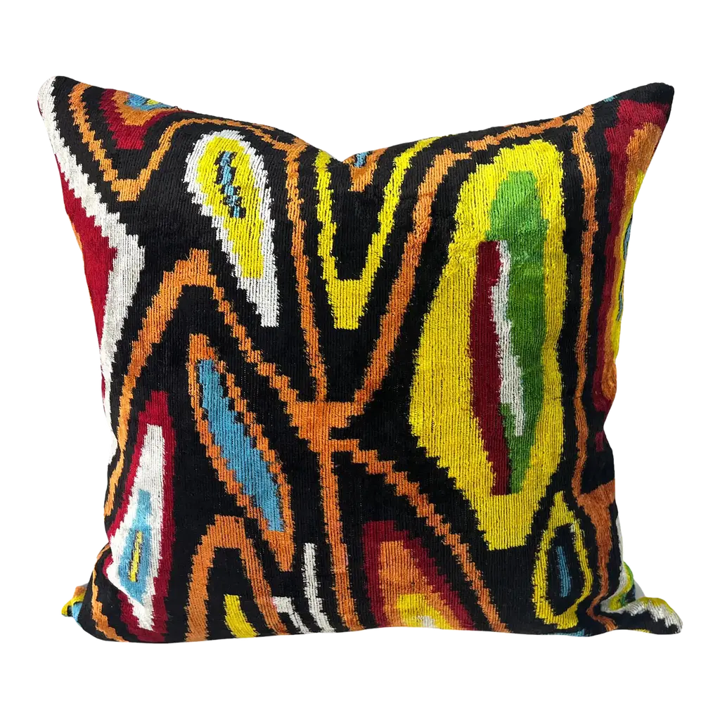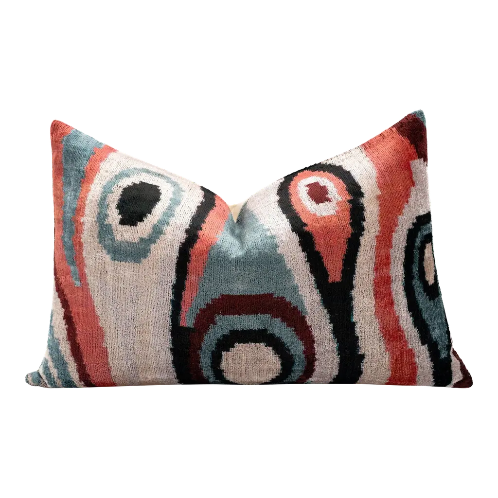 Colorful Velvet Ikat Cushion Cover 14'' X 24''