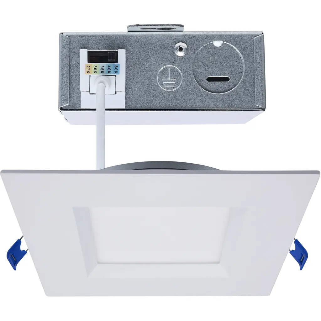 9 Watt LED Direct Wire Downlight with Night Light - 4 Inch - Remote Driver - CCT Selectable - Dimmable - Square - White Finish