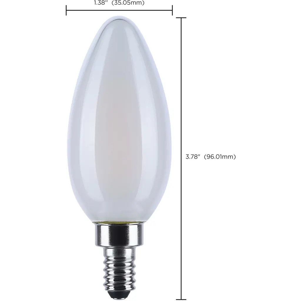 The S12158 Dim to Warm B11 bulb from SATCO NUVO pairs traditional candelabra style with smooth dimming from 3000K to 2000K. Its frosted finish diffuses soft light, while the E12 base, 360 degree beam spread, and 90 CRI make it perfect for decorative settings. Rated for wet locations, this 120V lamp brings cozy ambiance indoors or out.
