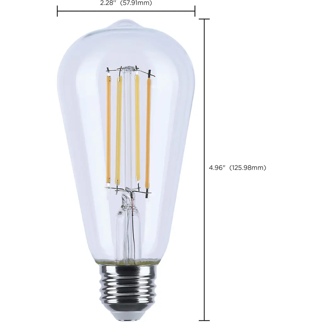The SATCO NUVO S12154 ST19 bulb captures the vintage look with modern Dim to Warm technology, shifting seamlessly from 3000K to a candlelit 2000K. With a clear finish and exposed filament style, this 120V bulb offers 360 degree light distribution, a high 90 CRI, and wet location rating-ideal for decorative or hospitality use where ambiance matters.