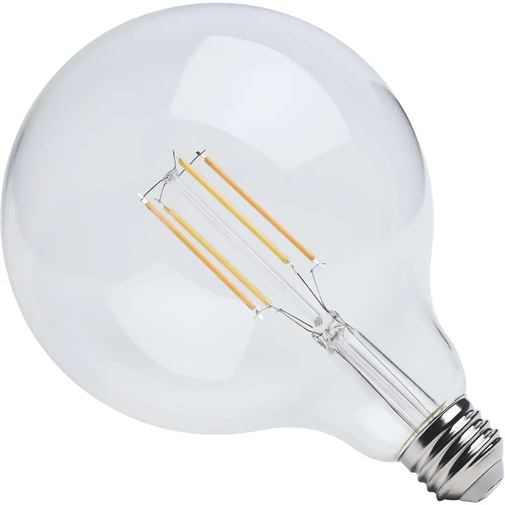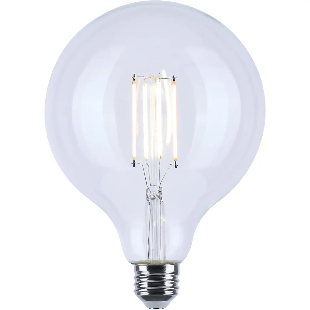 Make a bold decorative statement with SATCO NUVO's S12155 G40 Dim to Warm filament bulb. With its oversized clear globe and warm dimming from 3000K to 2000K, it creates a stunning ambiance. The 360 degree illumination, E26 base, and 90 CRI bring vibrant light to residential or hospitality spaces, while its wet location rating ensures versatility indoors or out.