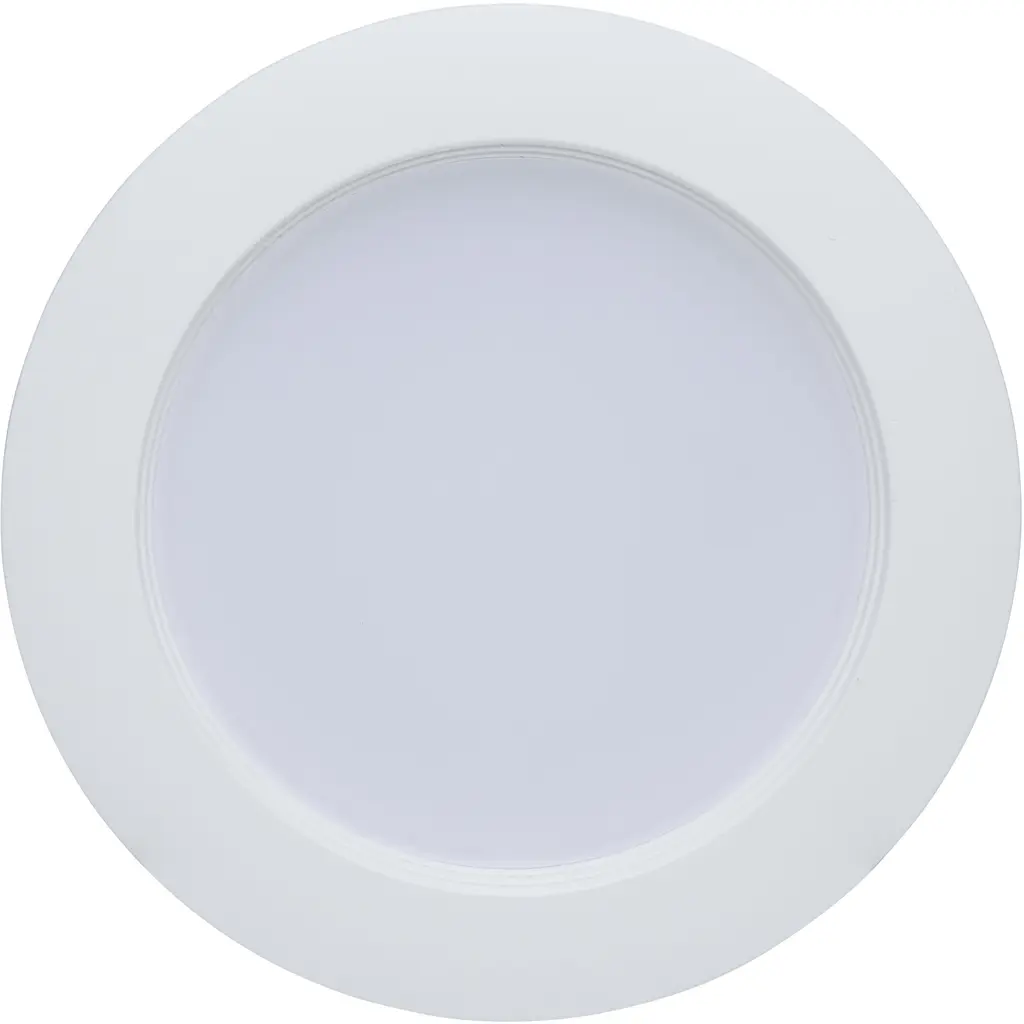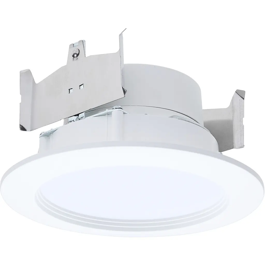 SATCO NUVO'S S11891 is a 4-inch, regressed, 8-watt LED wafer-style retrofit downlight that delivers sleek, high-performance lighting in a compact form. Designed for easy installation, it features an on-unit switch for selecting from five color temperatures (2700K5000K), allowing tailored illumination for any setting. This model is wet-location rated and equipped with a non-conductive dead-front trim, making it a safe and stylish choice for showers, bathrooms, and other damp environments. With a high 90 CRI, it offers bright, energy-efficient light with excellent color rendering. The S11891 includes an LED quick connect and E26 adapter for fast, hassle-free setup in both remodels and new construction.