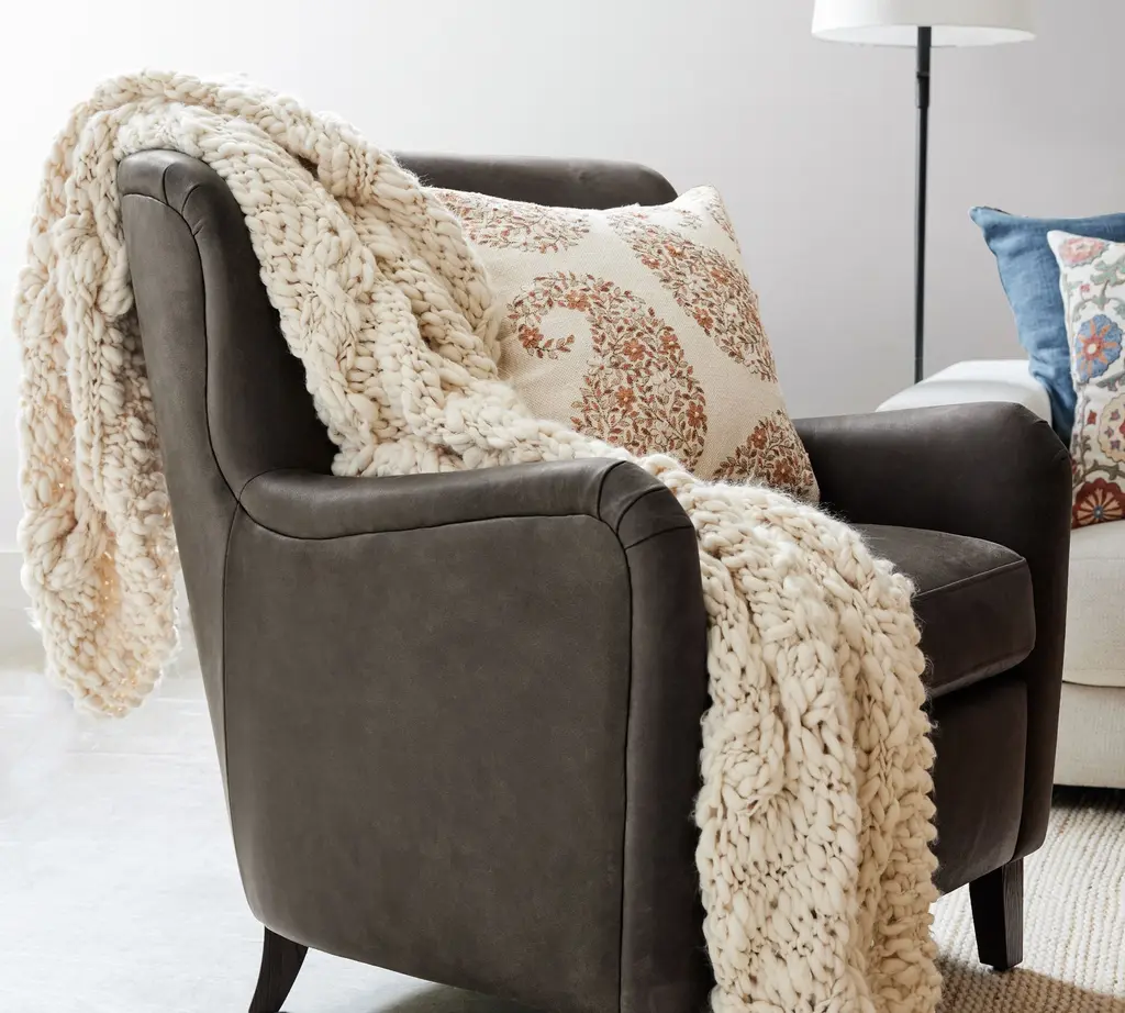 Like wrapping up in your favorite sweater, our extra-large throw has a classic cable knit that feels cozy and familiar. Handknit in chunky yarns for just the right amount of weight and softness, it’s the throw you’ll want to keep close for movie nights and afternoon naps.