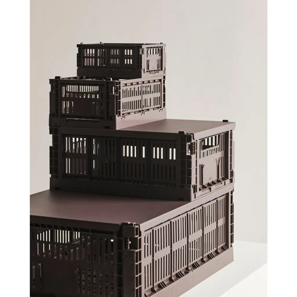 The Color Crates by HAY are characterized by functional design, industrial esthetics and a wide range of delicious colors. The compact, stackable containers are great for storing all types of items from toys to office supplies, and their airy, perforated design makes them perfect for food and bathroom accessories, too. The updated Color Crates are made from 100% recycled polypropylene, and all sizes can be stacked together. Pick your favorite Color Crate or mix and match different colors as you like!