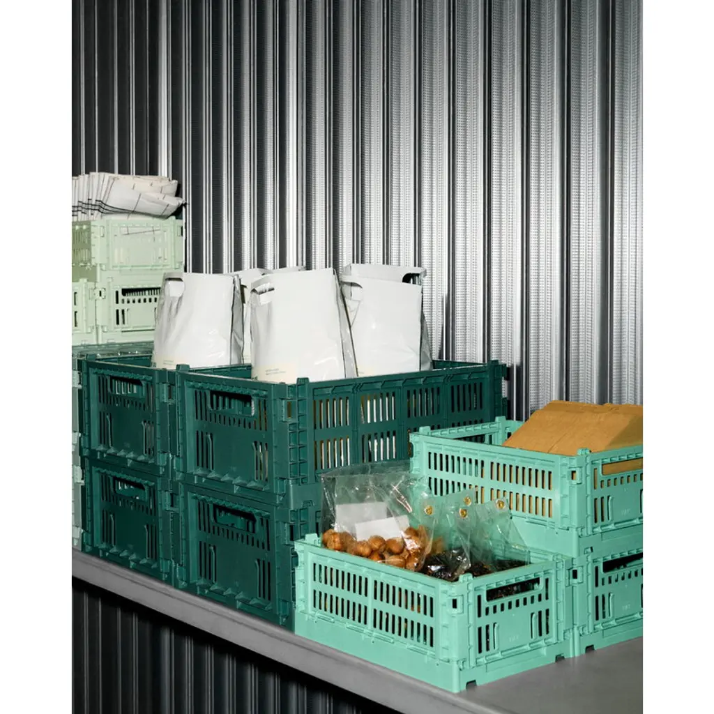 The Color Crates by HAY are characterized by functional design, industrial esthetics and a wide range of delicious colors. The compact, stackable containers are great for storing all types of items from toys to office supplies, and their airy, perforated design makes them perfect for food and bathroom accessories, too. The updated Color Crates are made from 100% recycled polypropylene, and all sizes can be stacked together. Pick your favorite Color Crate or mix and match different colors as you like!