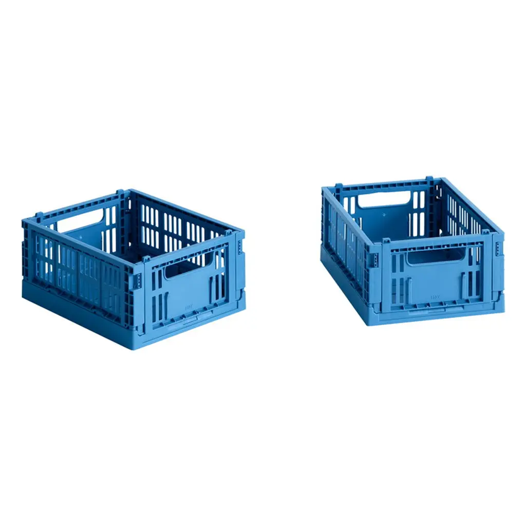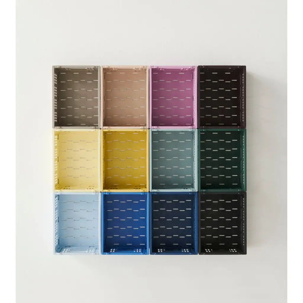 The Color Crates by HAY are characterized by functional design, industrial esthetics and a wide range of delicious colors. The compact, stackable containers are great for storing all types of items from toys to office supplies, and their airy, perforated design makes them perfect for food and bathroom accessories, too. The updated Color Crates are made from 100% recycled plastic, and all sizes can be stacked together. Pick your favorite Color Crate Mix or mix and match different color combinations as you like! The package contains two small Color Crate Mini baskets in the same attractive shade.