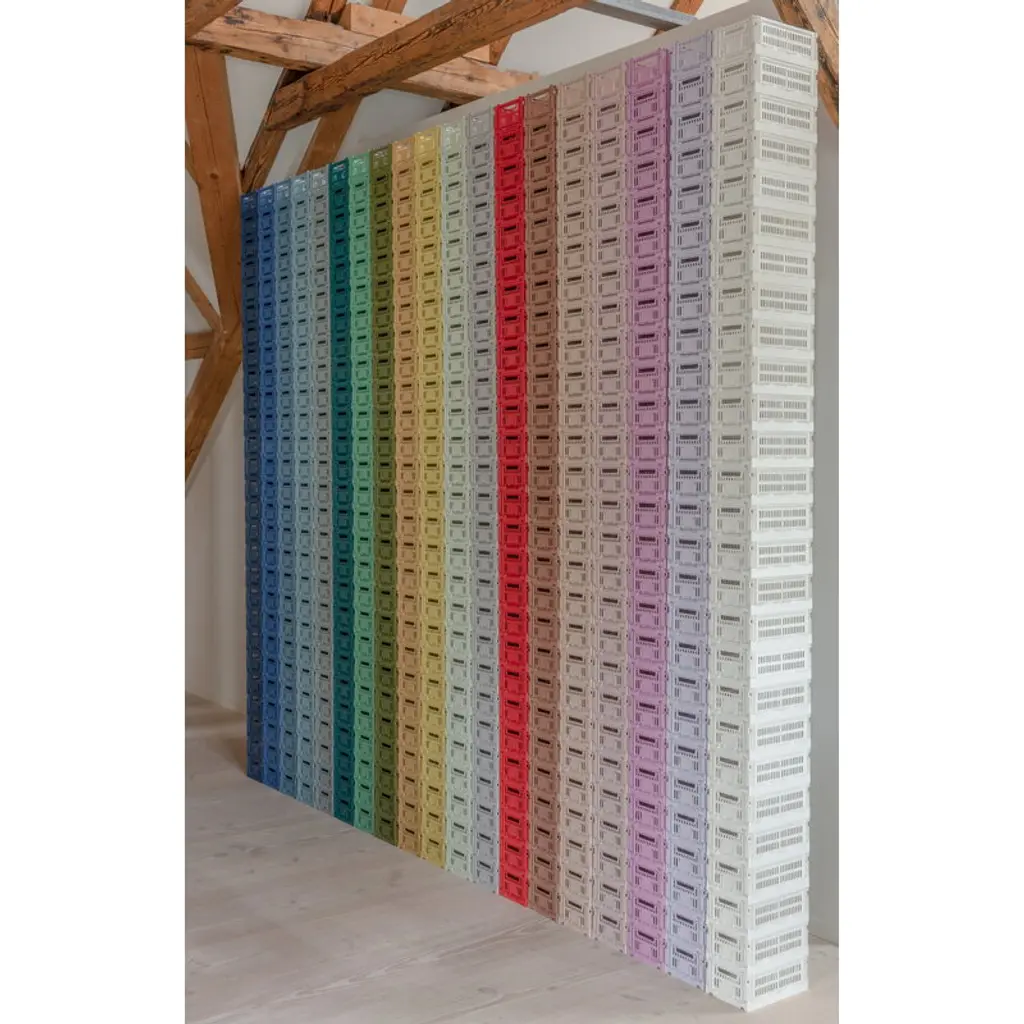 The Color Crates by HAY are characterized by functional design, industrial esthetics and a wide range of delicious colors. The compact, stackable containers are great for storing all types of items from toys to office supplies, and their airy, perforated design makes them perfect for food and bathroom accessories, too. The updated Color Crates are made from 100% recycled polypropylene, and all sizes can be stacked together. Pick your favorite Color Crate or mix and match different colors as you like!