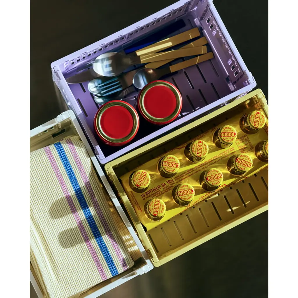 The Color Crates by HAY are characterized by functional design, industrial esthetics and a wide range of delicious colors. The compact, stackable containers are great for storing all types of items from toys to office supplies, and their airy, perforated design makes them perfect for food and bathroom accessories, too. The updated Color Crates are made from 100% recycled polypropylene, and all sizes can be stacked together. Pick your favorite Color Crate or mix and match different colors as you like!