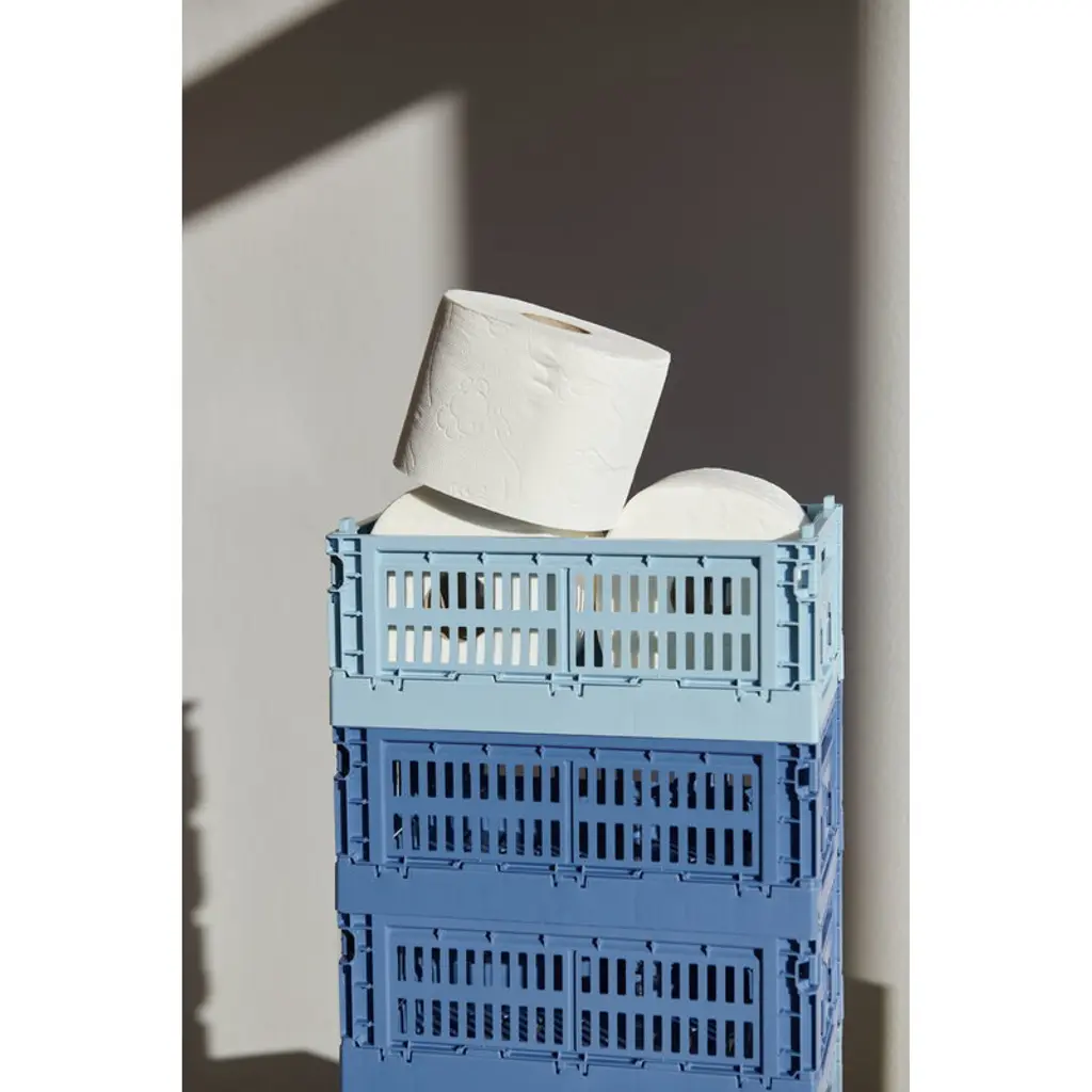 The Color Crates by HAY are characterized by functional design, industrial esthetics and a wide range of delicious colors. The compact, stackable containers are great for storing all types of items from toys to office supplies, and their airy, perforated design makes them perfect for food and bathroom accessories, too. The updated Color Crates are made from 100% recycled polypropylene, and all sizes can be stacked together. Pick your favorite Color Crate or mix and match different colors as you like!