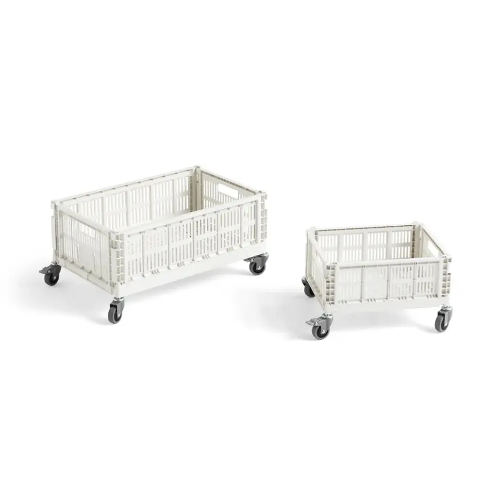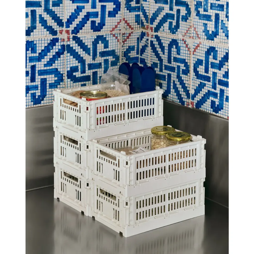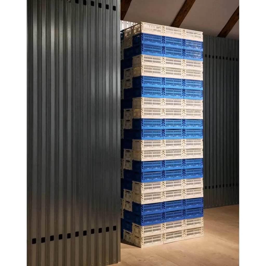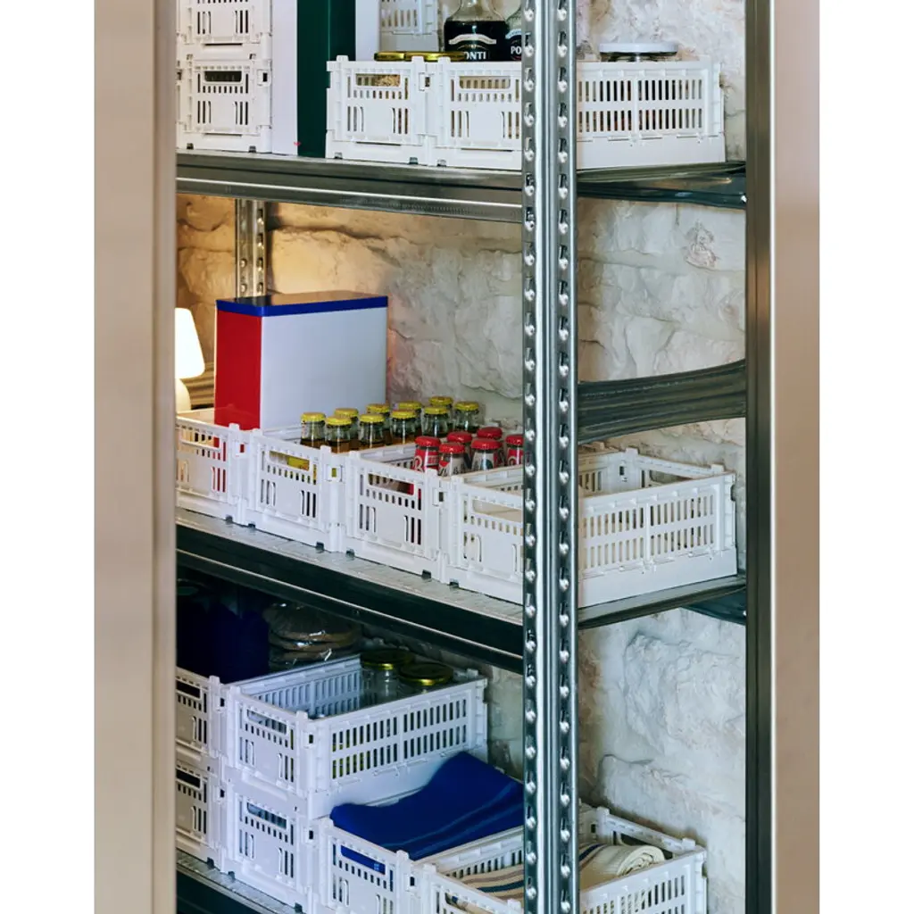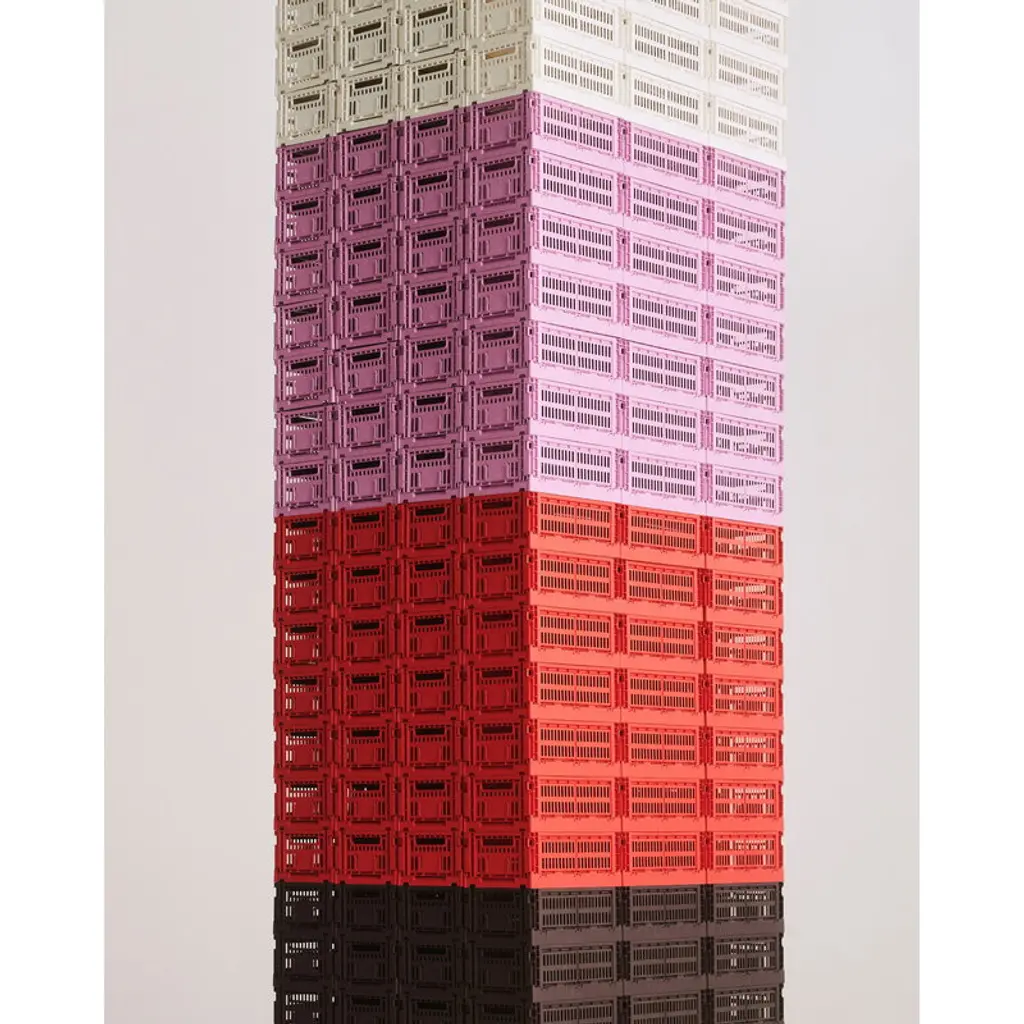 The Color Crates by HAY are characterized by functional design, industrial esthetics and a wide range of delicious colors. The compact, stackable containers are great for storing all types of items from toys to office supplies, and their airy, perforated design makes them perfect for food and bathroom accessories, too. The updated Color Crates are made from 100% recycled polypropylene, and all sizes can be stacked together. Pick your favorite Color Crate or mix and match different colors as you like!