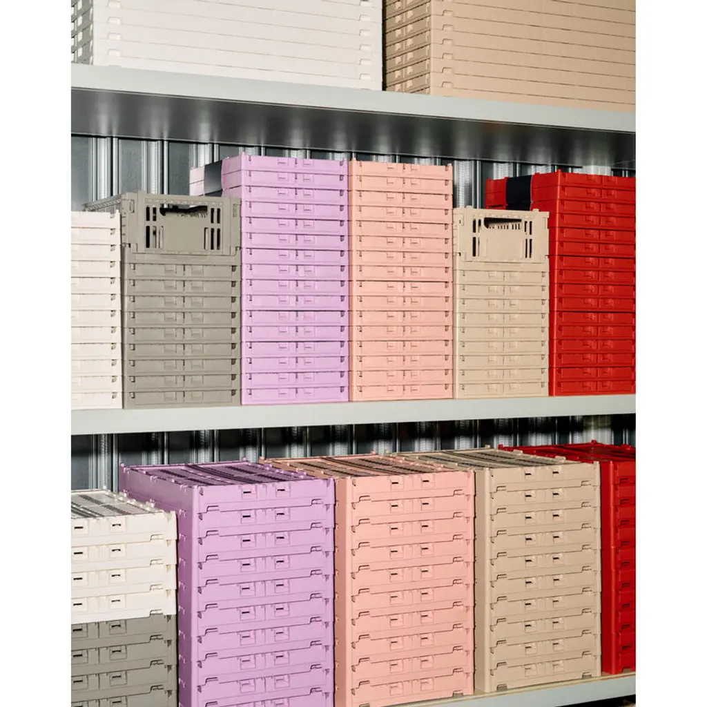 The Color Crates by HAY are characterized by functional design, industrial esthetics and a wide range of delicious colors. The compact, stackable containers are great for storing all types of items from toys to office supplies, and their airy, perforated design makes them perfect for food and bathroom accessories, too. The updated Color Crates are made from 100% recycled polypropylene, and all sizes can be stacked together. Pick your favorite Color Crate or mix and match different colors as you like!