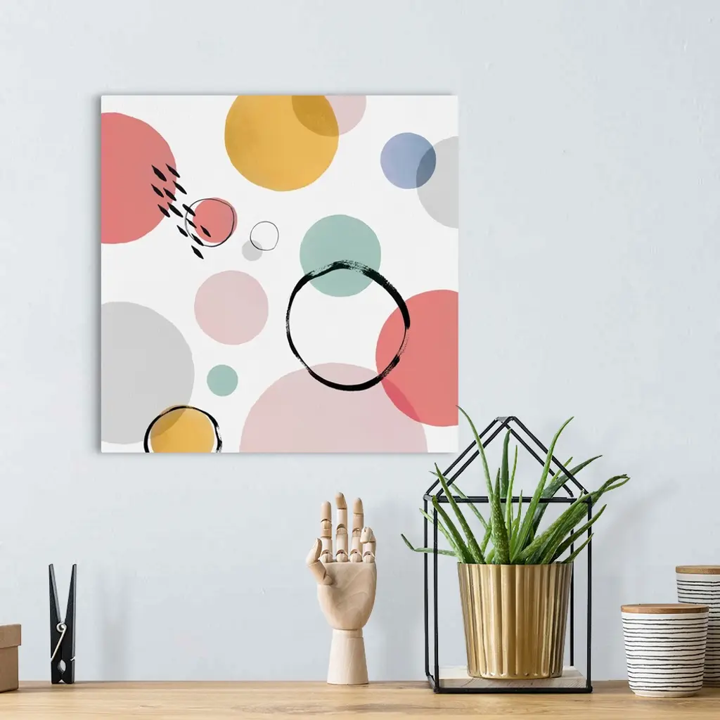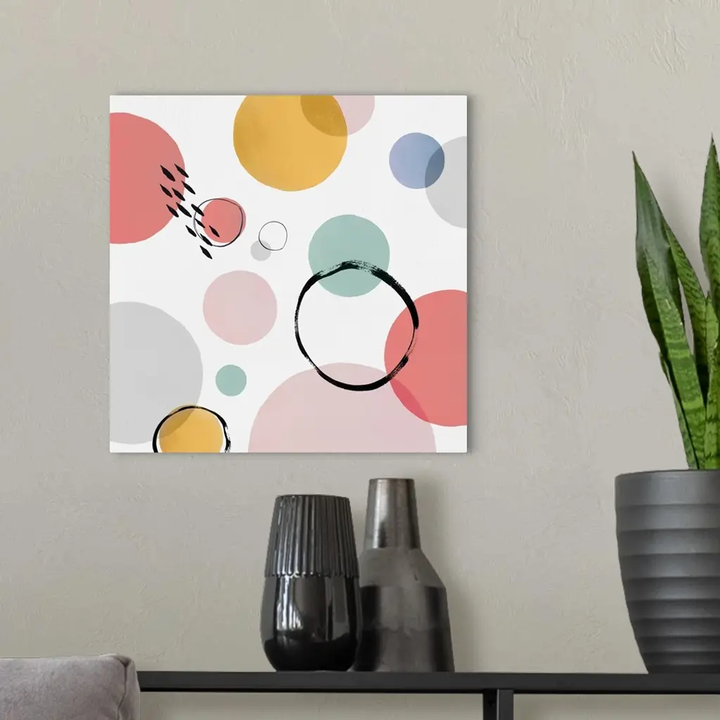Square modern design of varies circles in pastel colors and overlapping rings.