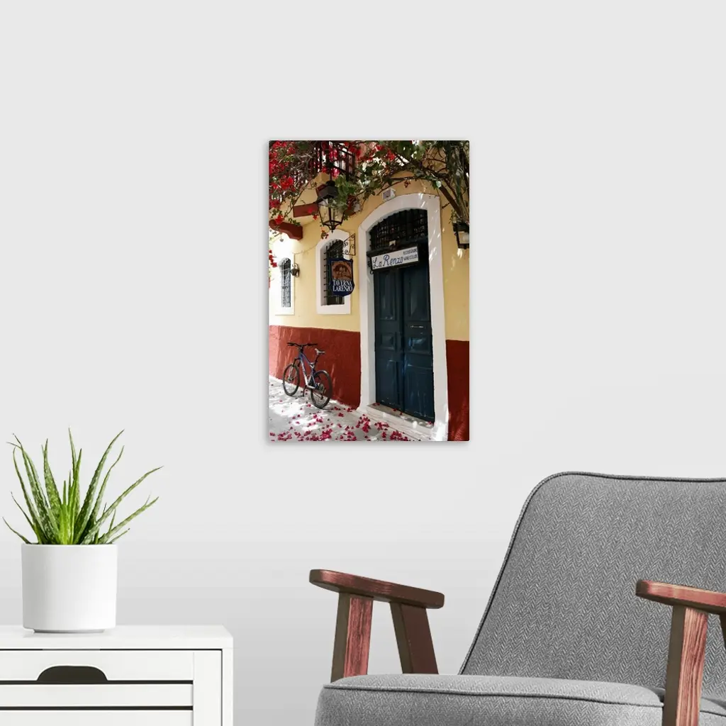 Colourful alleyway and entrance to Taverna Larenzo, Rethymnon Old Town, Crete, Greece