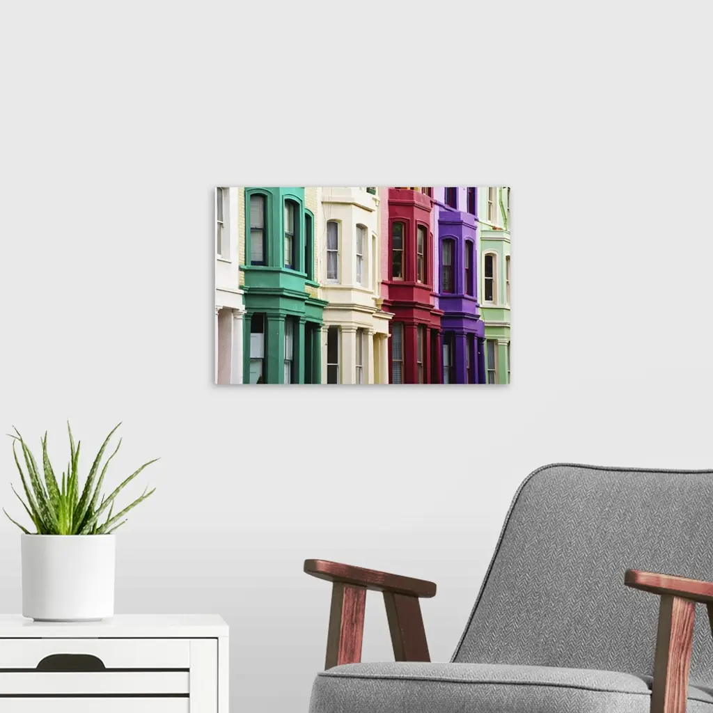 Colourful residential buildings in a row, Notting Hill, London, England wall art for home and office decor. Discover canvas art prints, photos, mural, big canvas art and framed wall art in GreatBigCanvas.com's varied collections.