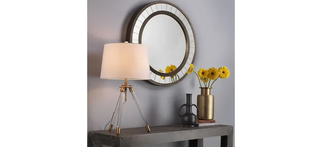 The Coltrane Mirror has a classic round shape with a mix of antique bronzed wood and mirrored frame. This mirror hangs both vertically and horizontally.