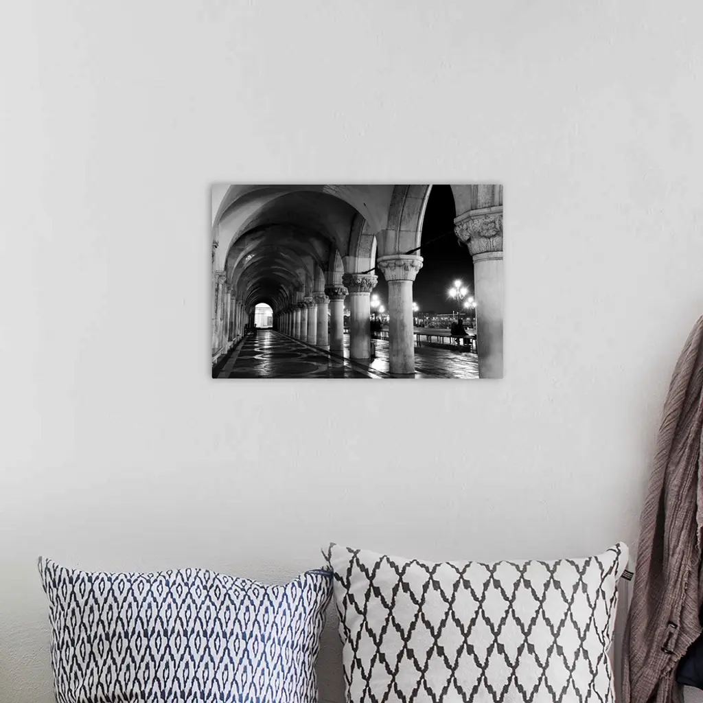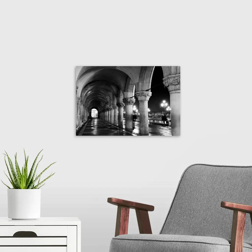 Columns of The Doge...s Palace at night, Venice, Veneto region, Italy