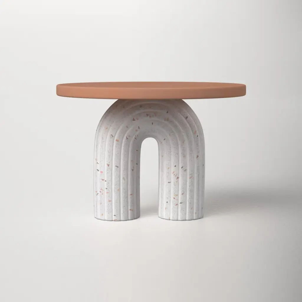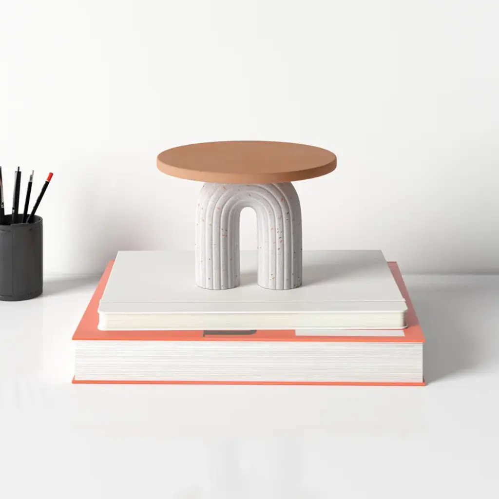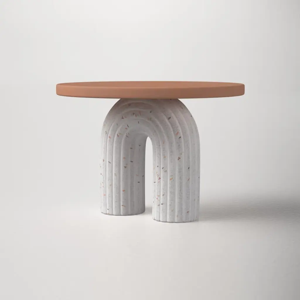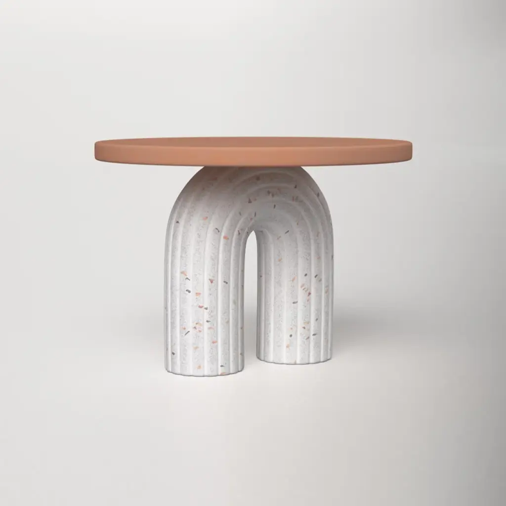 This stand is two-toned of solid terrazzo with a terracotta finish. Pefect for a plant or to be used as home décor.