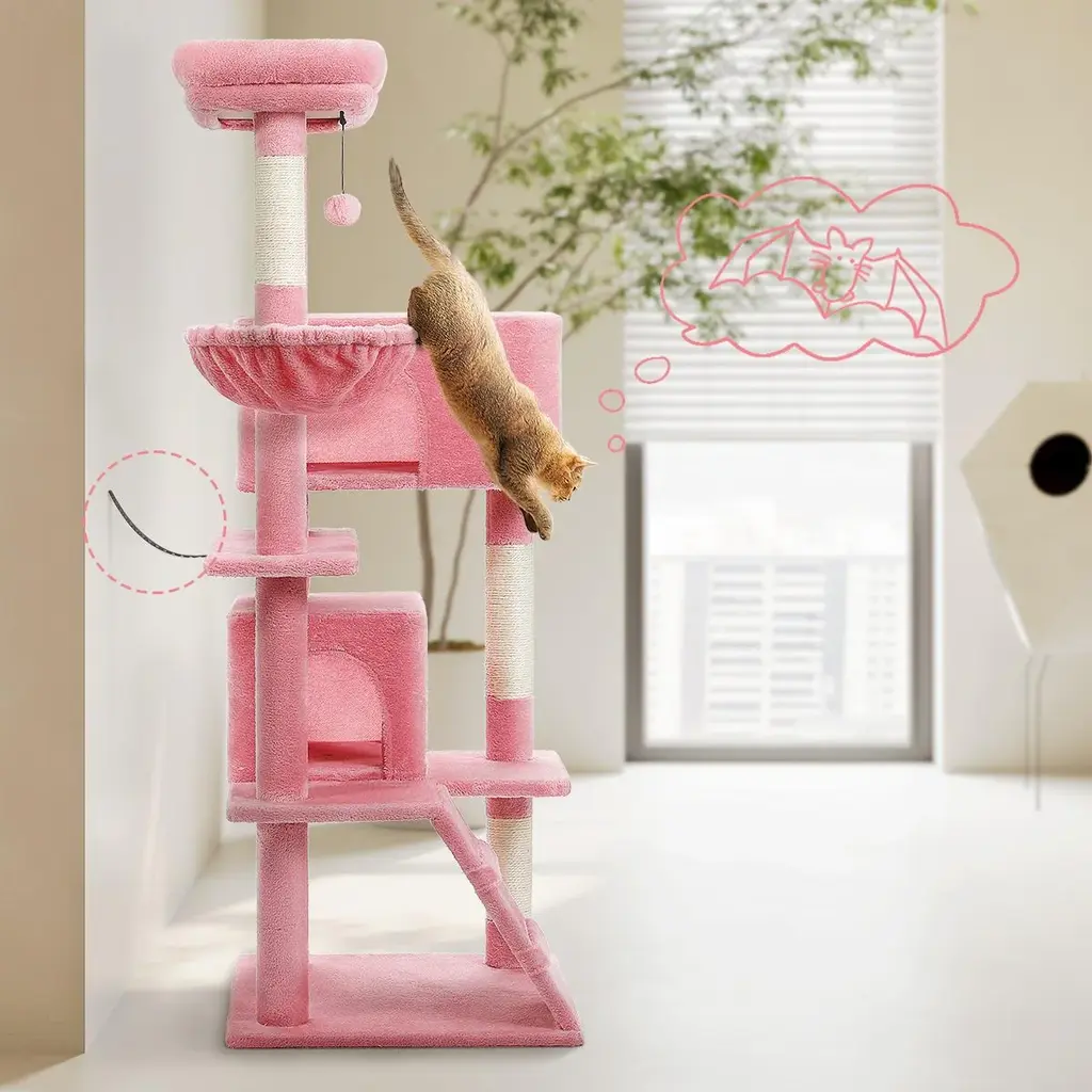 Comes With Extra Large Top Perch 56" Cat Tower - Pink