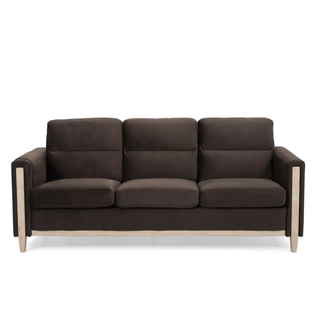 Comfortable Solid Wood Three-Seater Sofa - Soft Cushions, Durable And Long-Lasting,79.5" Sofa Couch - Brown