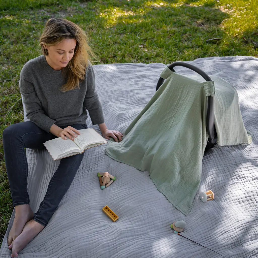 Keep your baby cozy, protected, and stylish with the Comfy Cubs car seat cover. Designed with both comfort and practicality in mind. Made from 70% bamboo rayon & 30% muslin cotton, this infant car seat canopy provides a breathable, lightweight layer of protection from harsh sunlight, bugs, and other outdoor elements, ensuring your little one stays calm and comfortable during travel. This toddler car seat cover is crafted from ultra-soft muslin cotton, known for its breathable properties, making it perfect for keeping your child cool on warm days while offering a comfortable, snug environment. Designed to offer full coverage, our carseat covers shields your baby from harmful UV rays, wind, and annoying insects. It's the perfect solution for safeguarding your child, no matter where your adventures take you. Whether you're shopping for yourself or gifting to a friend, this car seat canopy comes elegantly packaged, making it a wonderful choice for baby showers or new parents. Combining style, function, and protection, it's the ideal newborn baby essentials. Soft & Breathable Car Seat Cover: Crafted from 70% rayon made from bamboo and 30% muslin cotton, this baby seat cover creates a gentle, comfortable environment for your infant, even on the hottest days. Secure Snap Closure: The easy-to-use snap closure ensures a snug fit, keeping the carseat cover securely in place and protecting your child from the elements. Baby Travel Gear Protection: Our muslin car seat cover offers full coverage, shielding your baby from harmful UV rays and pesky insects, providing peace of mind during your travels. Universal Fit: Crafted to suit most standard car seats, our versatile baby seat cover is the perfect, practical solution for busy parents on the move. Gift-Ready Packaging: Presented in an elegant gift box, this canopy is perfect for gift giving, combining thoughtful design with baby necessities to delight new parents.